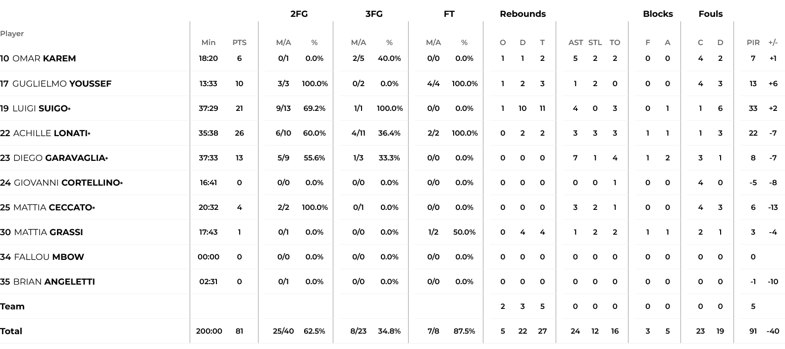 Από πλευράς Αρμάνι, στράφι πήγε η πολύ καλή εμφάνιση, τόσο του Λονάτι, με 26 πόντους, όσο και του Σουίγκο, με 21 πόντους και 11 ριμπάουντ.