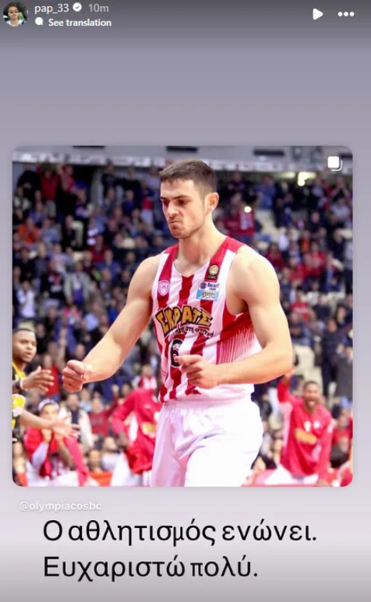 Συγκεκριμένα, ο 31χρονος πρώην αρχηγός του Παναθηναϊκού, έκανε story την ανάρτηση της ΚΑΕ Ολυμπιακός, ευχαριστώντας την άλλοτε ομάδα του.