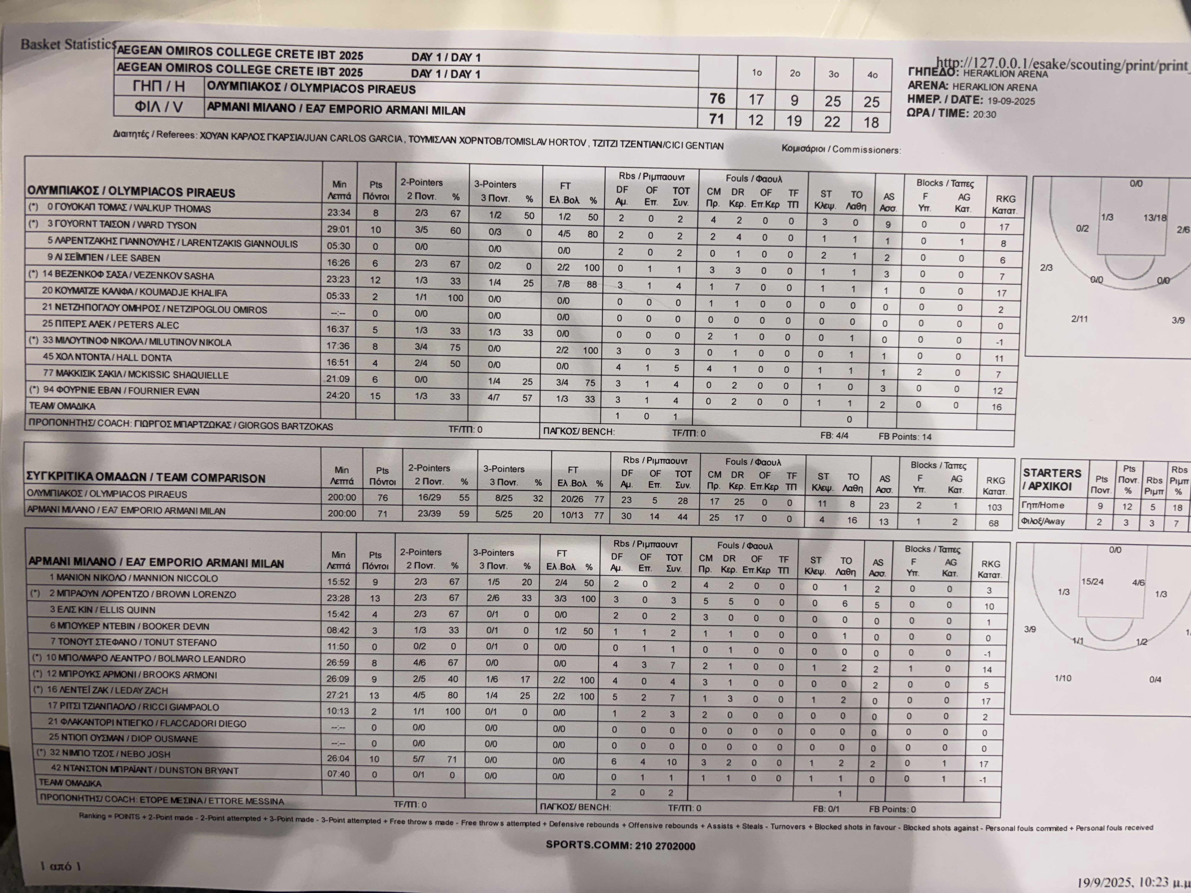 Για την Αρμάνι, ο Μπράουν είχε 13 πόντους, όσους πέτυχε και ο Λεντέι, με τον Νίμπο να προσθέτει 10.