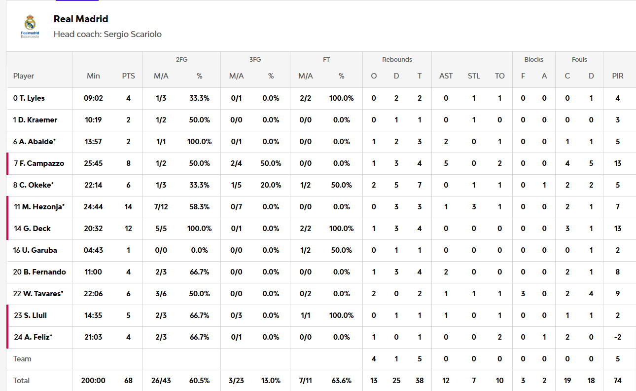 Κορυφαίοι των ιταλών ήταν ο Έντουαρντς με 14 πόντους και ο Σαλιού Νιανγκ με 12 πόντους και 4 ριμπάουντ. Από τους φιλοξενούμενους διασώθηκαν μόνοι οι Χεζόνια και Ντεκ που πέτυχαν 14 και 12 πόντους αντίστοιχα.