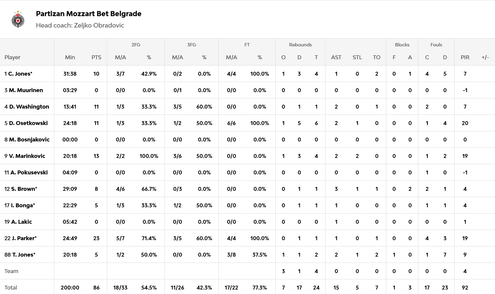 Η Παρτιζάν επέστρεψε στα τελευταία λεπτά και έκανε ντέρμπι του αγώνα, με την Ρεάλ να βρίσκει απαντήσεις και να νικάει εντός έδρας με 93-86. Η ισπανική ομάδα ανέβασε το ρεκόρ της στο 3-1, ενώ οι ασπρόμαυροι έπεσαν στο 2-2
