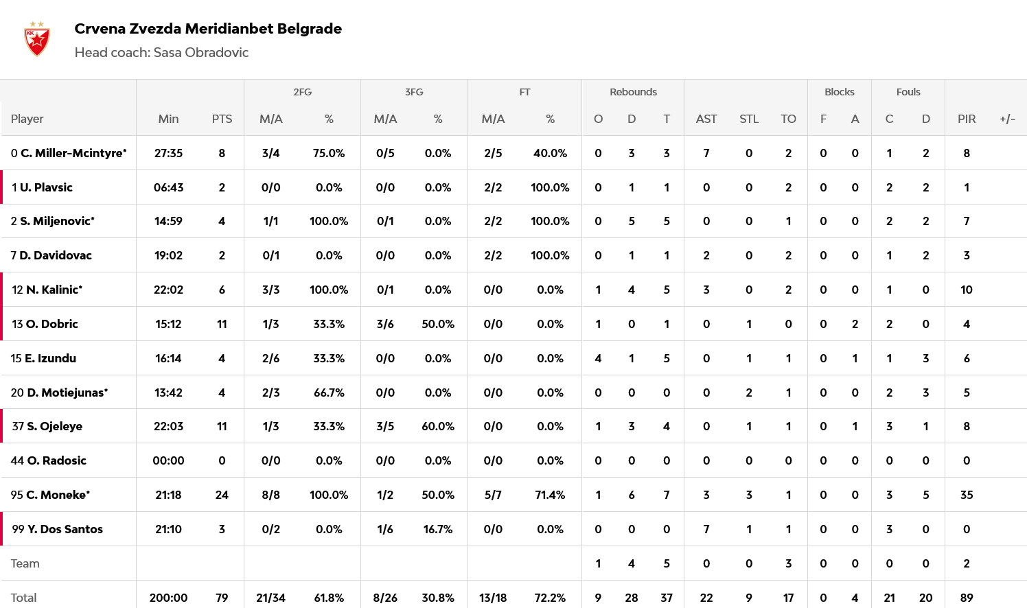 Την ξέφρενη πορεία του συνεχίζει ο Ερυθρός Αστέρας. Οι Σέρβοι, με τον Μονέκε να κάνει… όργια, πέρασαν με χαρακτηριστική άνεση και το εμπόδιο της Βιλερμπάν, όπως δείχνει το τελικό 79-65 και με την πέμπτη συνεχόμενη νίκη τους, ανέβασαν το ρεκόρ τους στο 5-2. Στο 2-5 έπεσαν οι Γάλλοι.