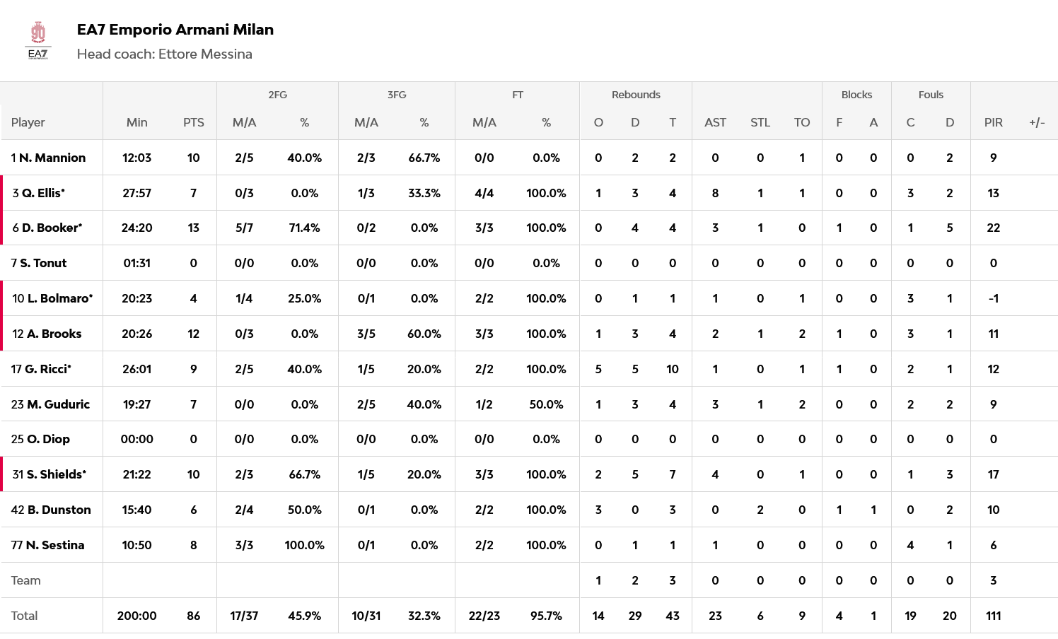 Μπούκερ με 13 πόντους, Μπρουκς με 12 και Μανιόν με Σιλντς, από 10 έκαστος, ήταν οι κορυφαίοι της Αρμάνι, ενώ για την Παρί, ο Ιφί ήταν μία ομάδα μόνος του με 24 πόντους.