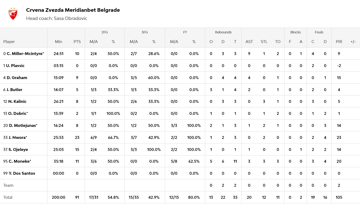 Ξεχώρισαν: Εξαιρετικός ο Νουόρα με 23 πόντους, με τον Οτζελέγε να προσθέτει 15, τον Μονέκε 11 και τον Μακϊντάιρ να… εκτελεί τους Πειραιώτες, με 10 πόντους, όλους στα τελευταία λεπτά. Για τον Ολυμπιακό, 16 πόντους σημείωσε ο Ντόρσεϊ και 13 ο Φουρνιέ