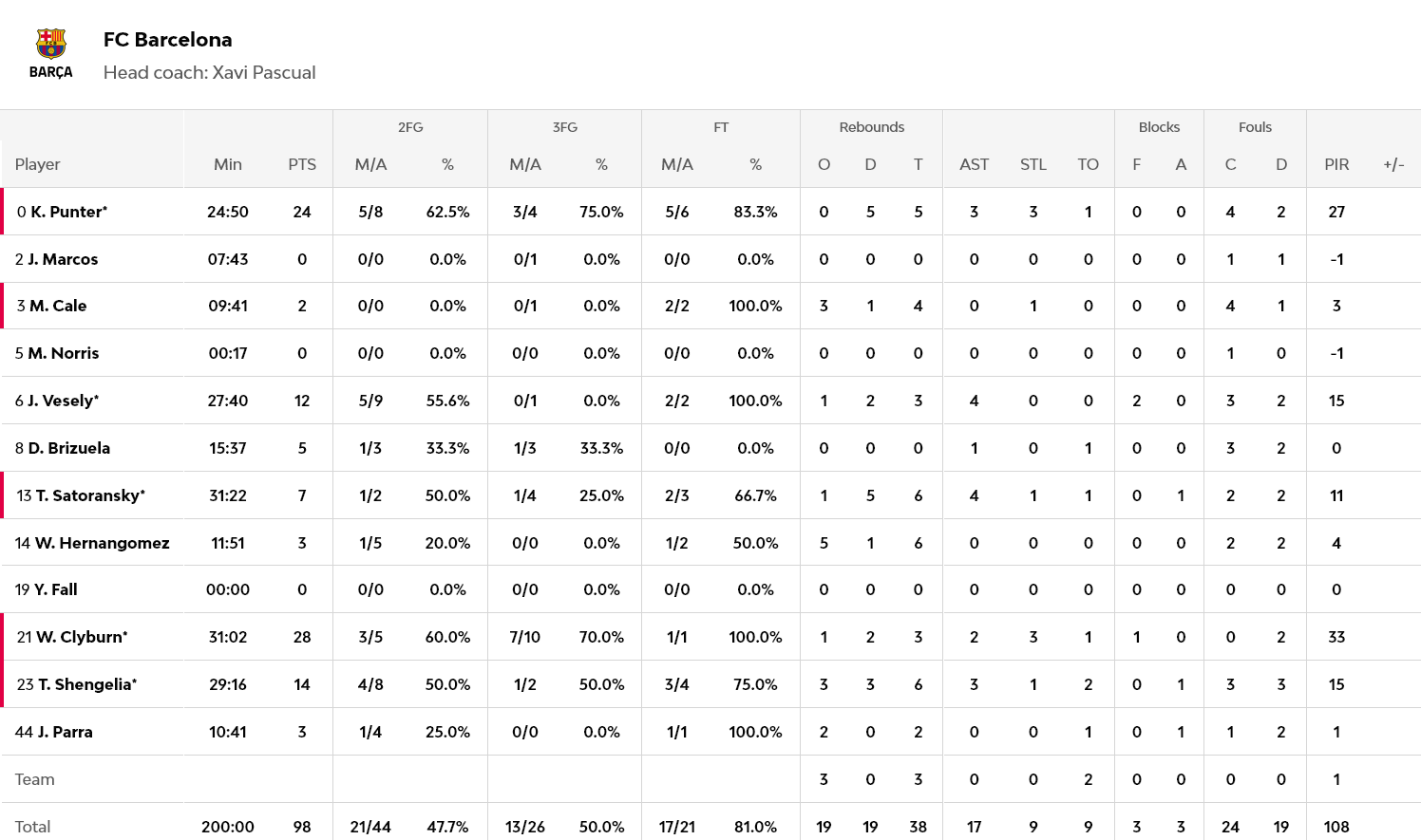 Ξεχώρισαν: 22 πόντους σημείωσε ο Βεζένκοβ, 19 ο Ντόρσεϊ και από 11 οι Χολ και Φουρνιέ. Για την Μπαρτσελόνα, εκτός του ασταμάτητου Κλάιμπερν, ο Πάντερ είχε 24 πόντους και οι Σενγκέλια και Βέσελι από 14 και 12 αντίστοιχα.
