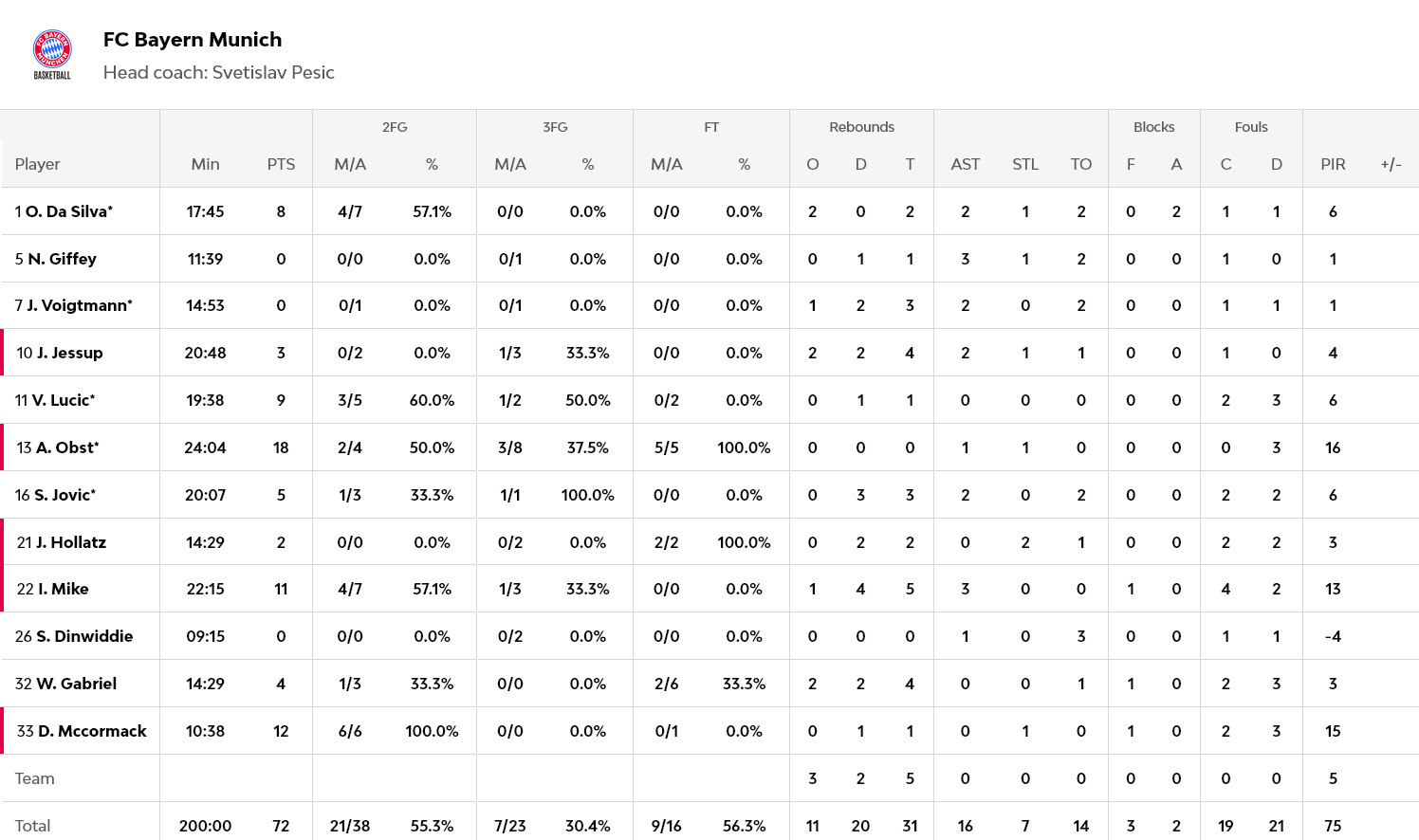 Για την Μπάγερν, Ομπστ και ΜακΚόρμαμ είχαν 18 και 12 πόντους αντίστοιχα, ενώ ο Μάικ πρόσθεσε 11.