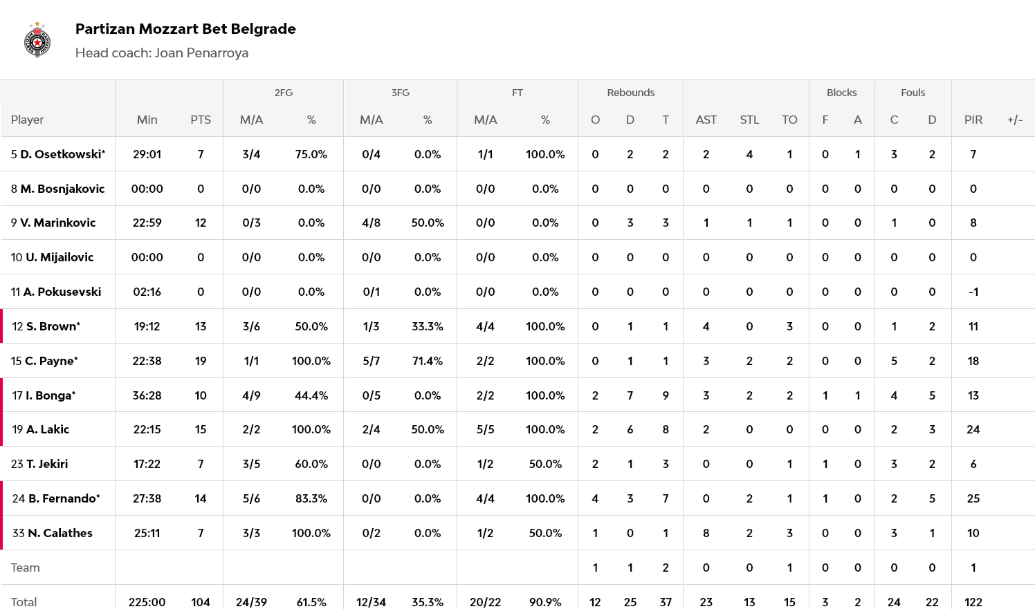 Ο Πέιν με 19 πόντους ήταν ο πρώτος σκόρερ των Σέρβων, με τον Λάκιτς να έχει 15 πόντους και τον Φερνάντο 14. Για την Χάποελ, που έπαθε ένα ανεπανάληπτο μπλακ άουτ από το 37-64 του 23’ και μετά, ο Οτούρου είχε 24 πόντους, ο Μίτσιτς 19 και ο Τζόουνς 16.