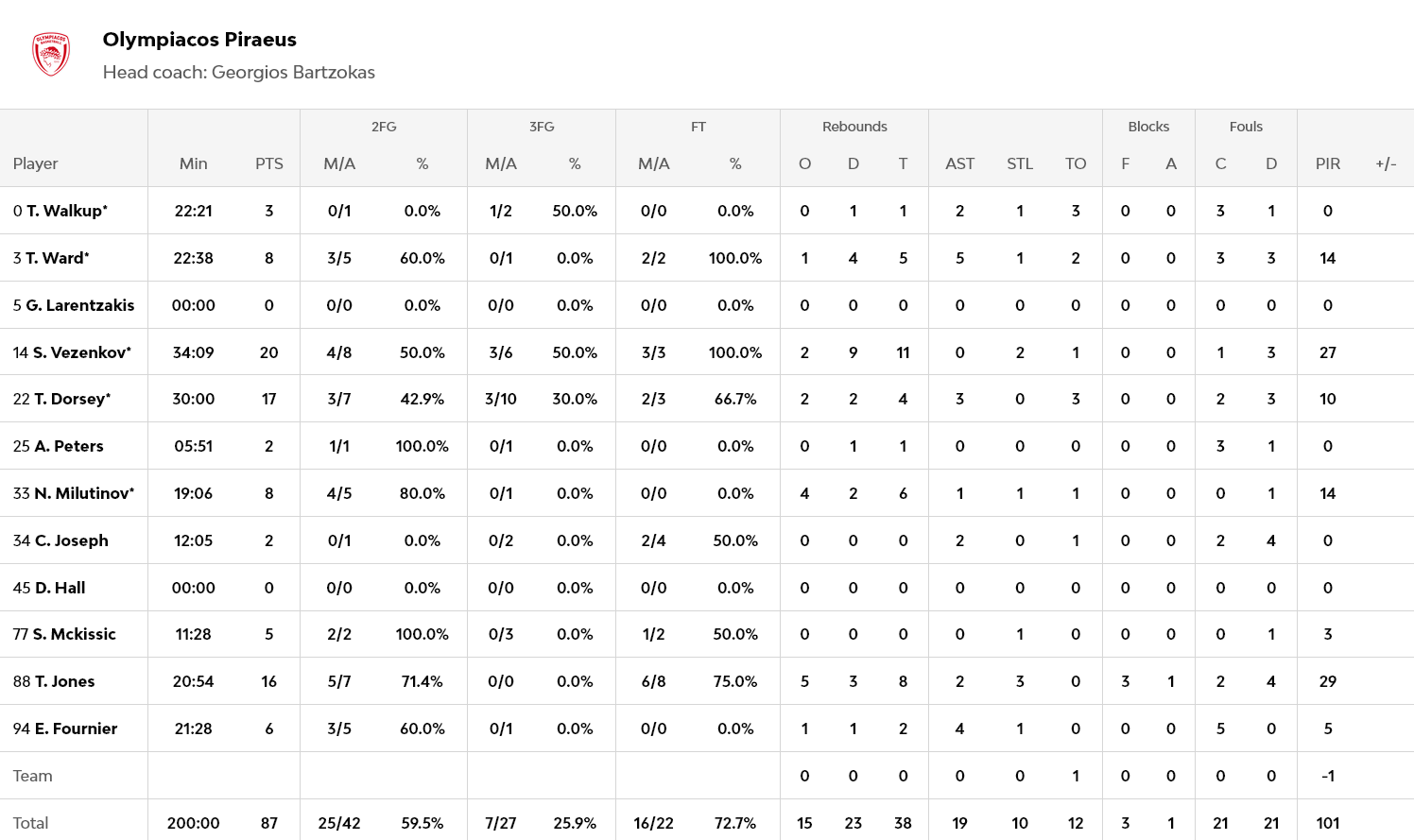 Ξεχώρισαν: Εξαιρετικός ο Ντόρσεϊ με 17 πόντους, ανάμεσα τους το τρίποντο που έφερε τον Ολυμπιακό 0,7 μακριά από την ανατροπή του -13 της Βαρκελώνης, σαρωτικός ο Ταϊρίκ Τζόουνς με 16 πόντους και οκτώ ριμπάουντ. Για την Μπαρτσελόνα των πέντε διψήφιων, ο Πάντερ είχε 15, οι Μπριθουέλα και Κλάιμπερν από 14 και οι Σενγκέλια και Βέσελι από 12, με τον τελευταίο, με καλάθι στο φινάλε, να κρατά την ομάδα του πάνω από τους Πειραιώτες, σε ενδεχόμενη ισοβαθμία.
