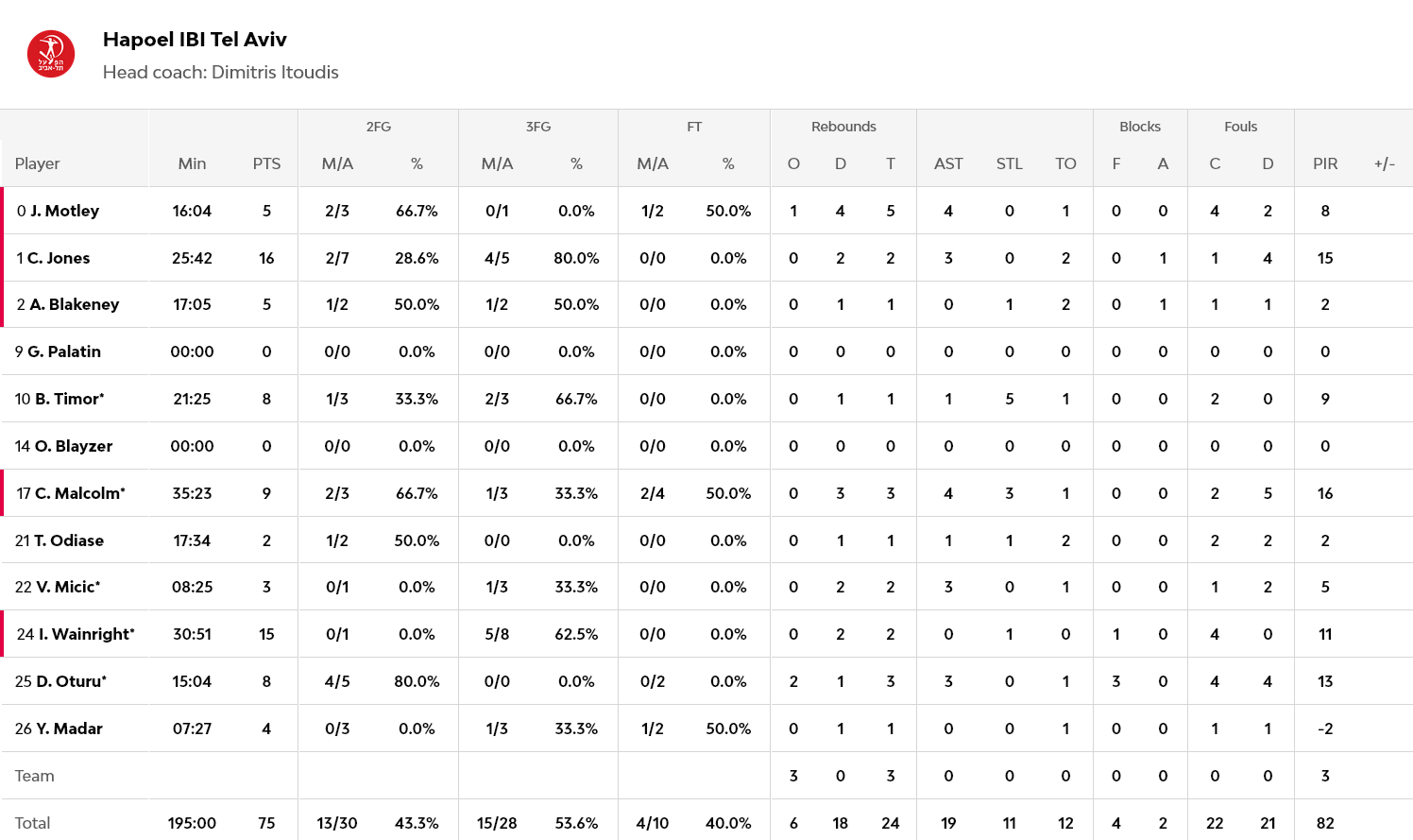 Για την Χάποελ, ο Τζόουνς είχε 16 πόντους και ο Γουέινραϊτ 15.