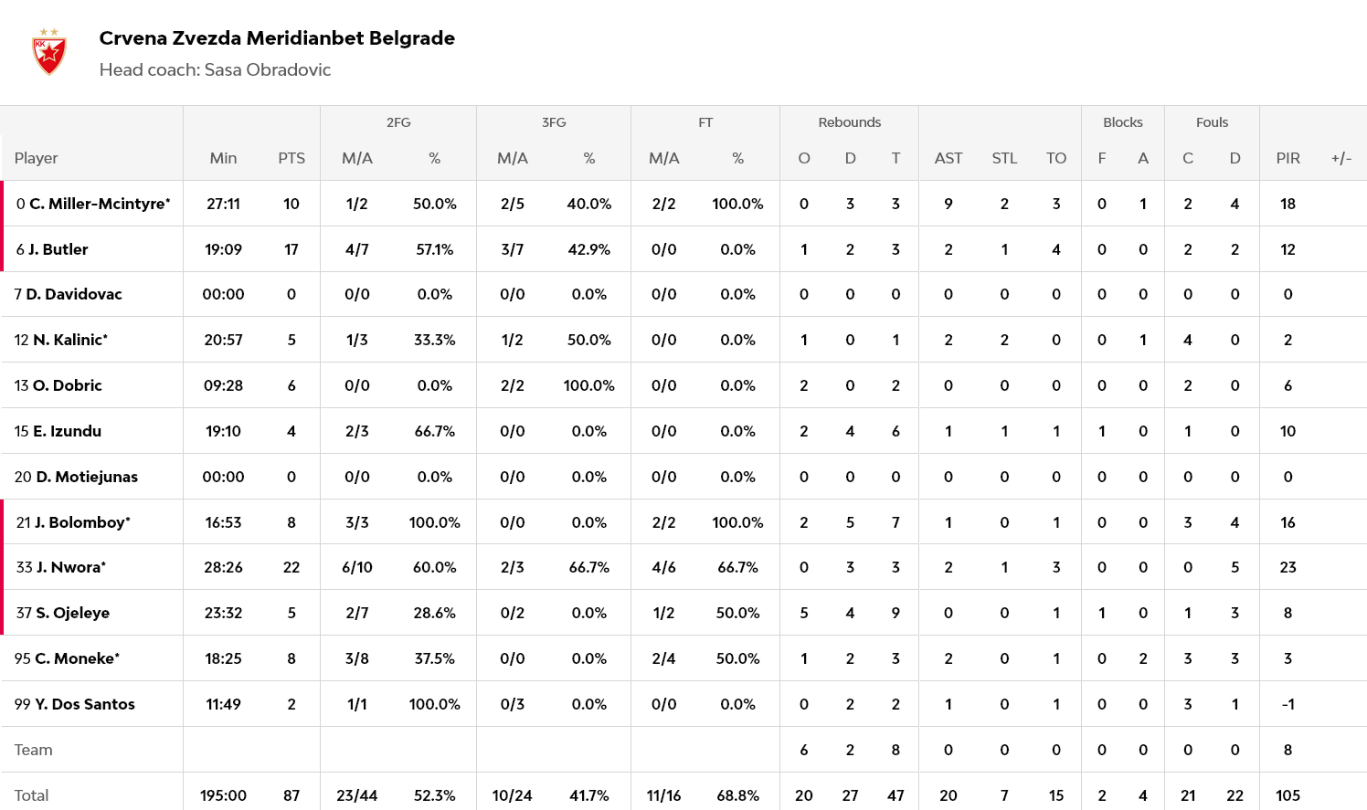 Νουόρα με 22 πόντους και Μπάτλερ με 17, ήταν οι κορυφαίοι για τον Αστέρα, που είχαν τον Μίλερ – Μάκινταϊρ με 10 πόντους και εννιά ασίστ.