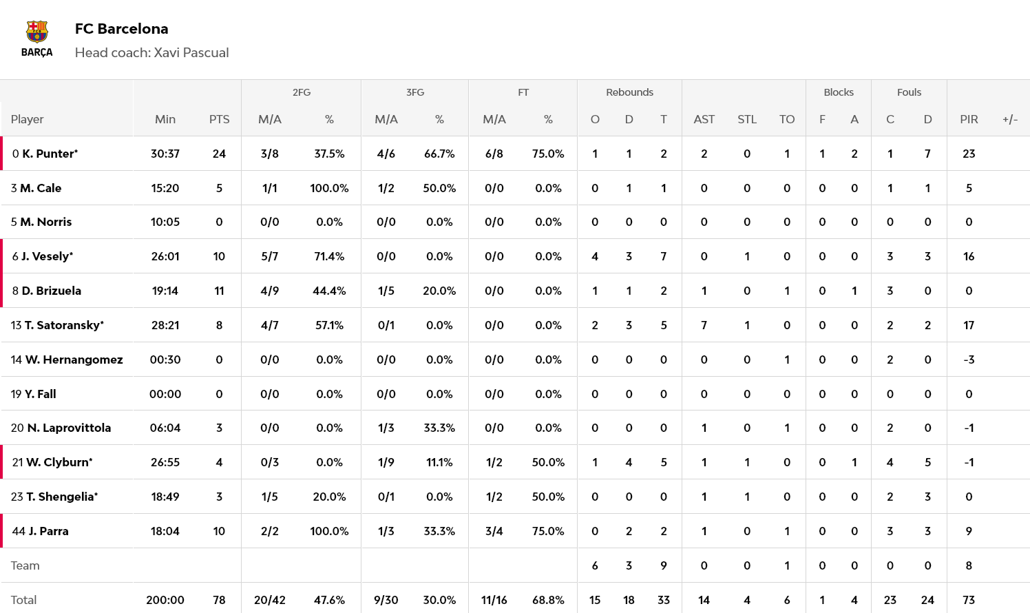 Για την Μπαρτσελόνα, που… ξύπνησε αργά, 24 πόντους είχε ο Πάντερ, 11 ο Μπριθουέλα και από 10 οι Βέσελι και Πάρα.