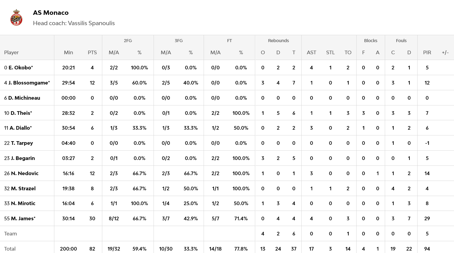 Από την Μπάγερν διακρίθηκαν οι Όμπστ και Μάικ με 19 και 12 πόντους αντίστοιχα. Από την Μονακό ο Τζέιμς πέτυχε συνολικά 30 πόντους, ενώ οι Μπλόσομγκειμ και Νέντοβιτς είχαν από 12 πόντους έκαστος.
