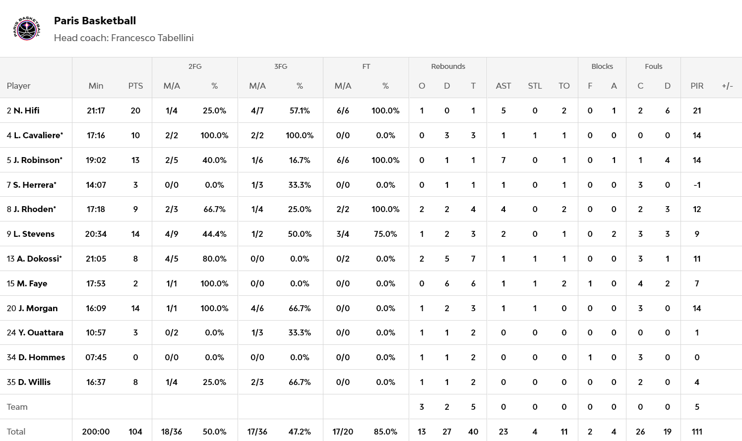 Η μεγαλύτερη διαφορά: +17 υπέρ της Παρί, 74-91 στο 33'