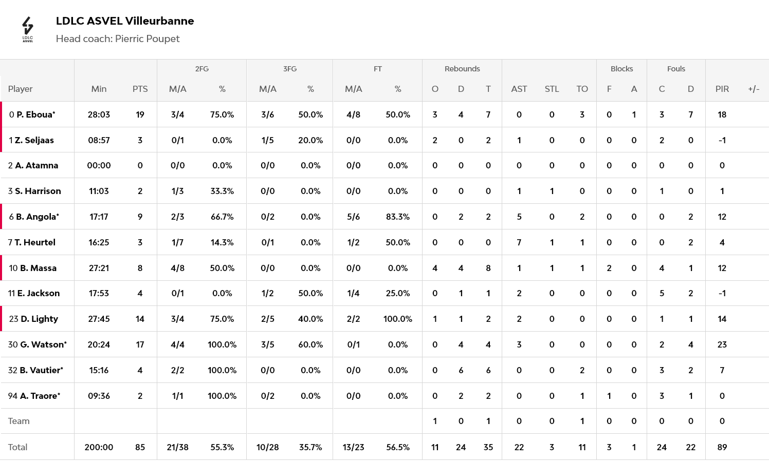 Ο Εμπουά με 19 πόντους και επτά ριμπάουντ, ήταν ο πρώτος σκόρερ των Γάλλων. Εξαιρετικός μέχρι την στιγμή του τραυματισμού του στο 32’ ο Γουάτσον με 17 πόντους, ενώ 14 πόντους είχε ο Λάιτι.