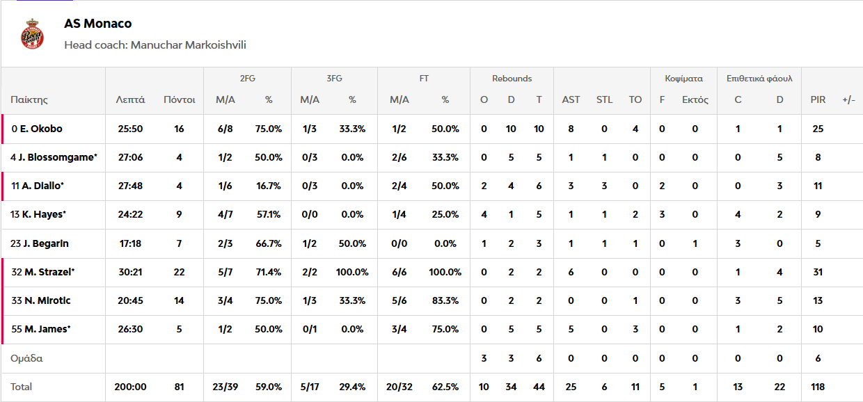 Η ομάδα του κόουτς Μαρκοϊσβίλι επικράτησε με 81-76 της ΑΣΒΕΛ στο πλαίσιο της 36ης αγωνιστικής της Euroleague και παρέμεινε στην δεκάδα. Οι Μονεγάσκοι για μεγάλο διάστημα ήταν μπροστά στο σκορ με διψήφια διαφορά αλλά εν τέλει το ματς κρίθηκε στην «κόψη του ξυραφιού». Ο Έλι Οκόμπο έβαλε ένα μεγάλο τρίποντο στο φινάλε και «τελείωσε» τους φιλοξενούμενους, οι οποίοι παραμένουν στην τελεθταία θέση με 8-28. Κορυφαίος των νικητών ήταν ο Στράζελ με 22 πόντους και έξι ασίστ.