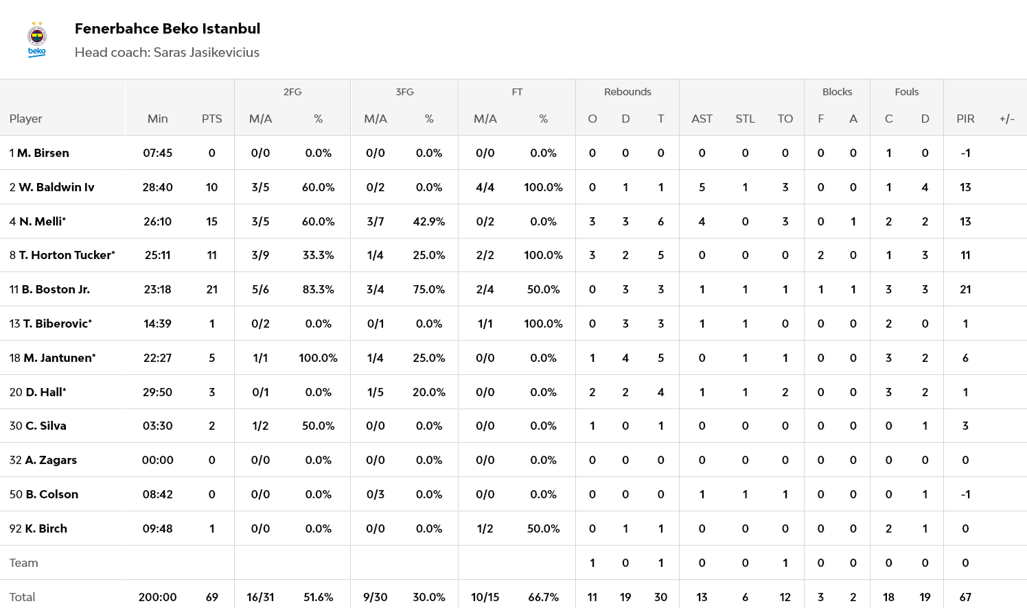 Για την Φενέρ, ο Μπόστον πάλευε μόνος του με 21 πόντους, με τον Μέλι να έχει 15 πόντους και έξι ριμπάουντ.