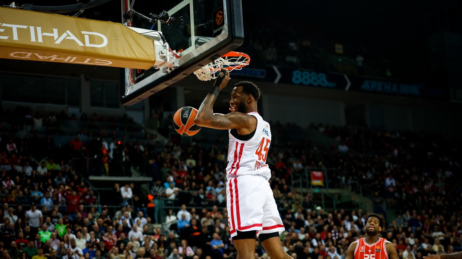 Αρχικά στο νο8, όταν και δέχτηκε την άλει ουπ πάσα του Τάισον Γουόρντ και κάρφωσε εντυπωσιακά στο καλάθι της Χάποελ.