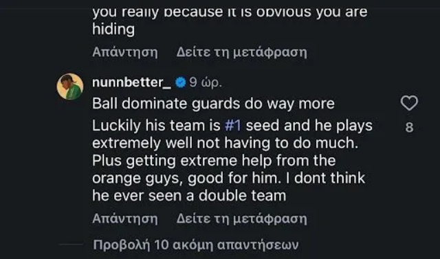 “Όλοι οι κυριαρχικοί guards κάνουν πολλά περισσότερα. Ευτυχώς η ομάδα του είναι στο νούμερο 1 και αυτός παίζει εξαιρετικά χωρίς να χρειάζεται να κάνει πολλά. Επίσης παίρνει τρομερή βοήθεια από τους “πορτοκαλί”, καλό γι’ αυτόν. Δεν νομίζω ότι έχει δει ποτέ double team”, ήταν το σχόλιο του Ναν σε δημοσίευση της ιστοσελίδας «basketnews», αναφορικά με την σύγκριση της επιρροής του Φρανσίσκο στην Ζαλγκίρις και του Βεζένκοβ στον Ολυμπιακό.