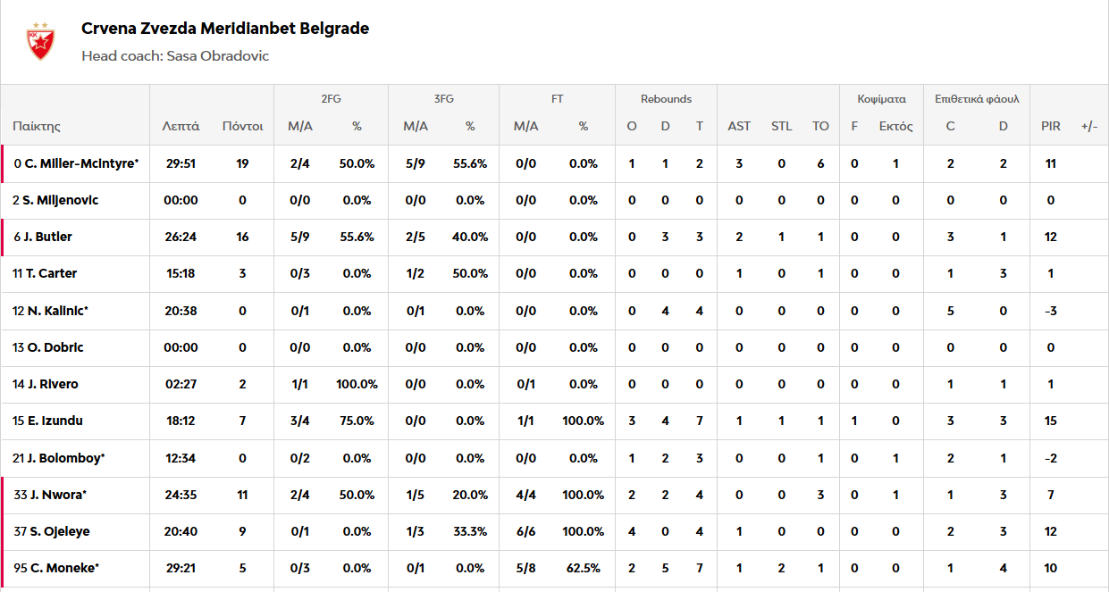 Κορυφαίος των νικητών ήταν ο Κλάιμπερν με 22 πόντους (6/10 τρίποντα) και 7 ριμπάουντ, όπως και ο Πάντερ με 22 πόντους. Από πλευράς Σέρβων, ξεχώρισε ο Κόντι-Μίλερ ΜακΚιντάιρ με 19 πόντους, με τον Μπάτλερ να ακολουθεί με 16 πόντους.