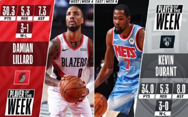 Oι Κέβιν Ντουράντ και Ντάμιαν Λίλαρντ είναι οι παίκτες της εβδομάδας του ΝΒΑ.