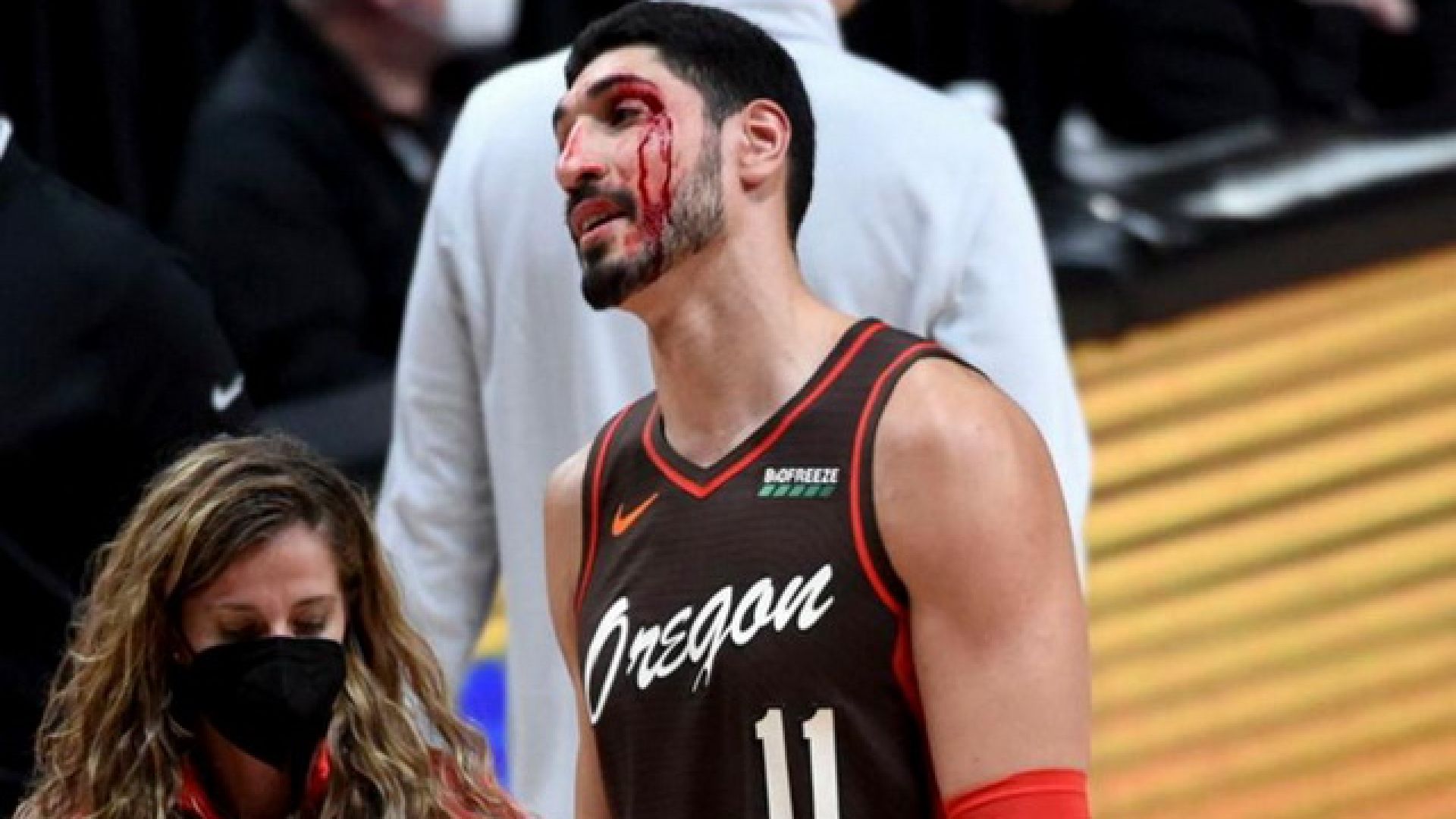 Με αρκετή δόση χιούμορ αντιμετώπισε ο Ενές Καντέρ τον τραυματισμό του στο πρόσωπο, κατά την διάρκεια του αγώνα των Μπλέιζερς με τους Σίξερς.