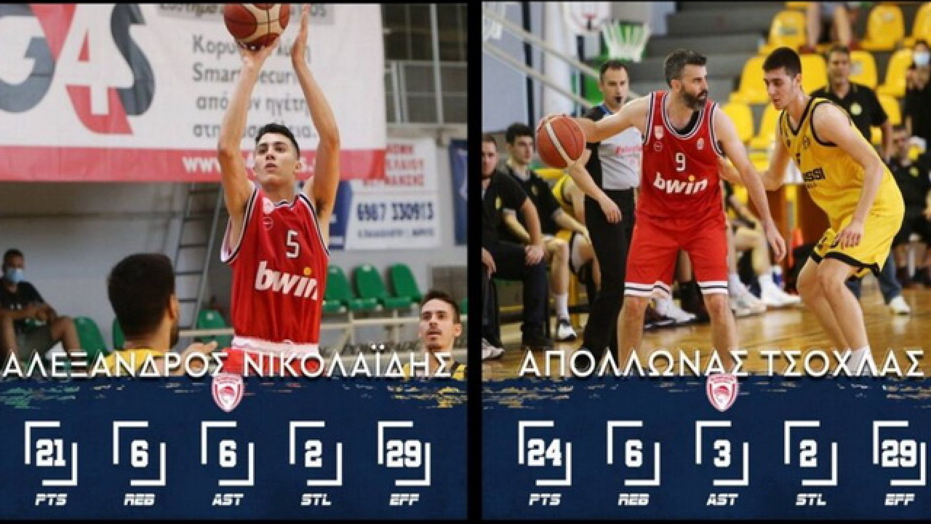 Ο λόγος για τον Απόλλωνα Τσόχλα και τον Αλέξανδρο Νικολαΐδη, καθώς αμφότεροι συγκέντρωσαν 29 βαθμούς στο σύστημα ranking, στην νίκη των Πειραιωτών με 96-94 επί του Αμαρουσίου.