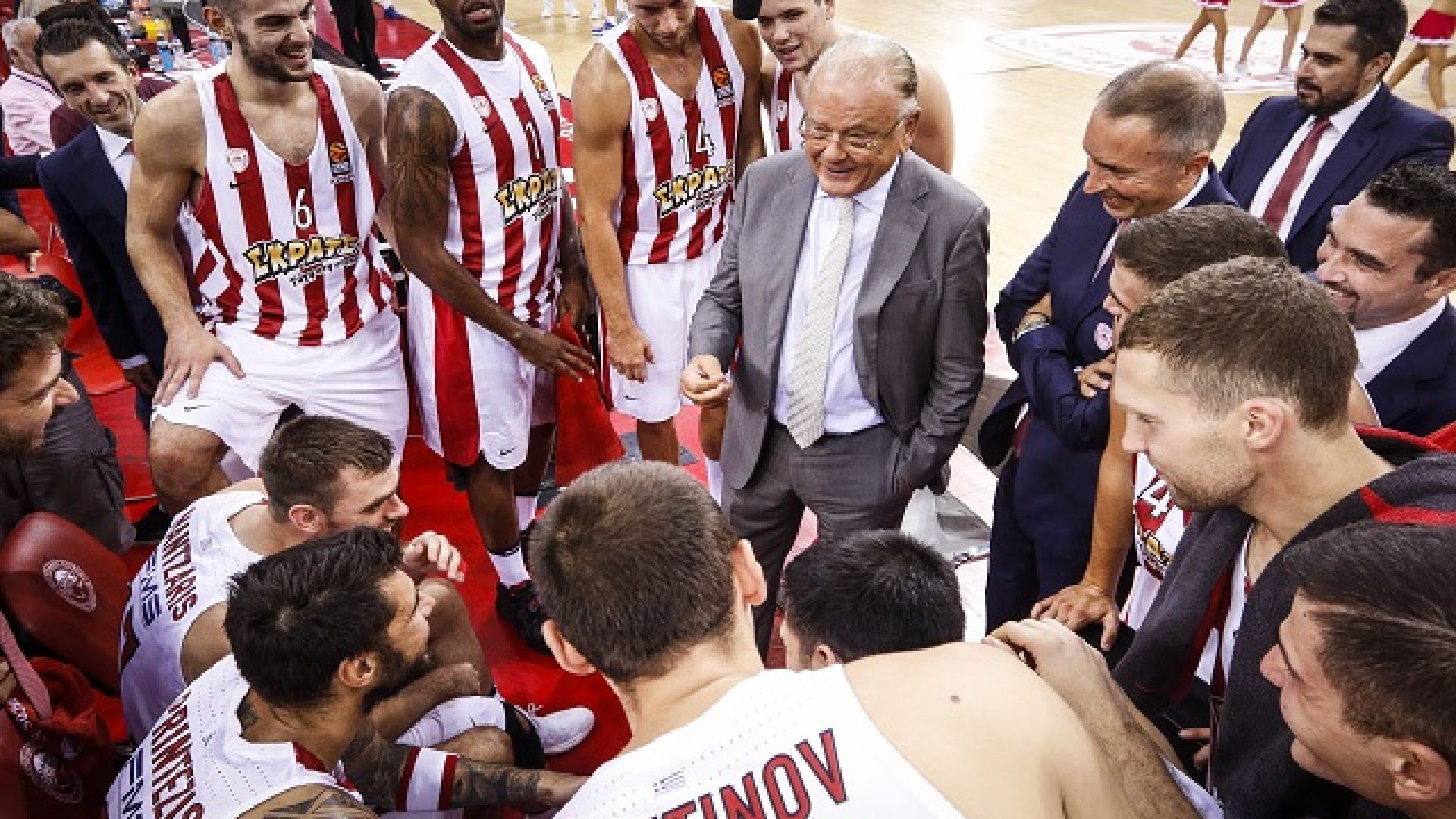 Ο τότε προπονητής του Ολυμπιακού, Γιάννης Σφαιρόπουλος, είχε παραχωρήσει τη θέση στου στον πάγκο, στον «σοφό», ο οποίος γνώρισε για ακόμη μία φορά την αποθέωση από τον κόσμο των ερυθρόλευκων