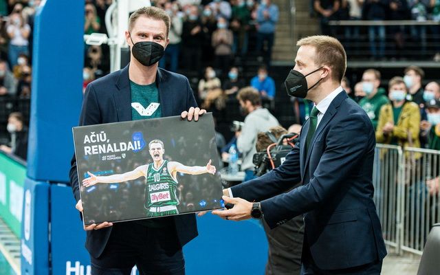 Έτσι, στο περιθώριο του πρώτου τάιμ άουτ της αναμέτρησης, οι ιθύνοντες της Ζαλγκίρις έσπευσαν να τιμήσουν  τον, αρκετά συγκινημένο, Λιθουανό πρώην άσο.