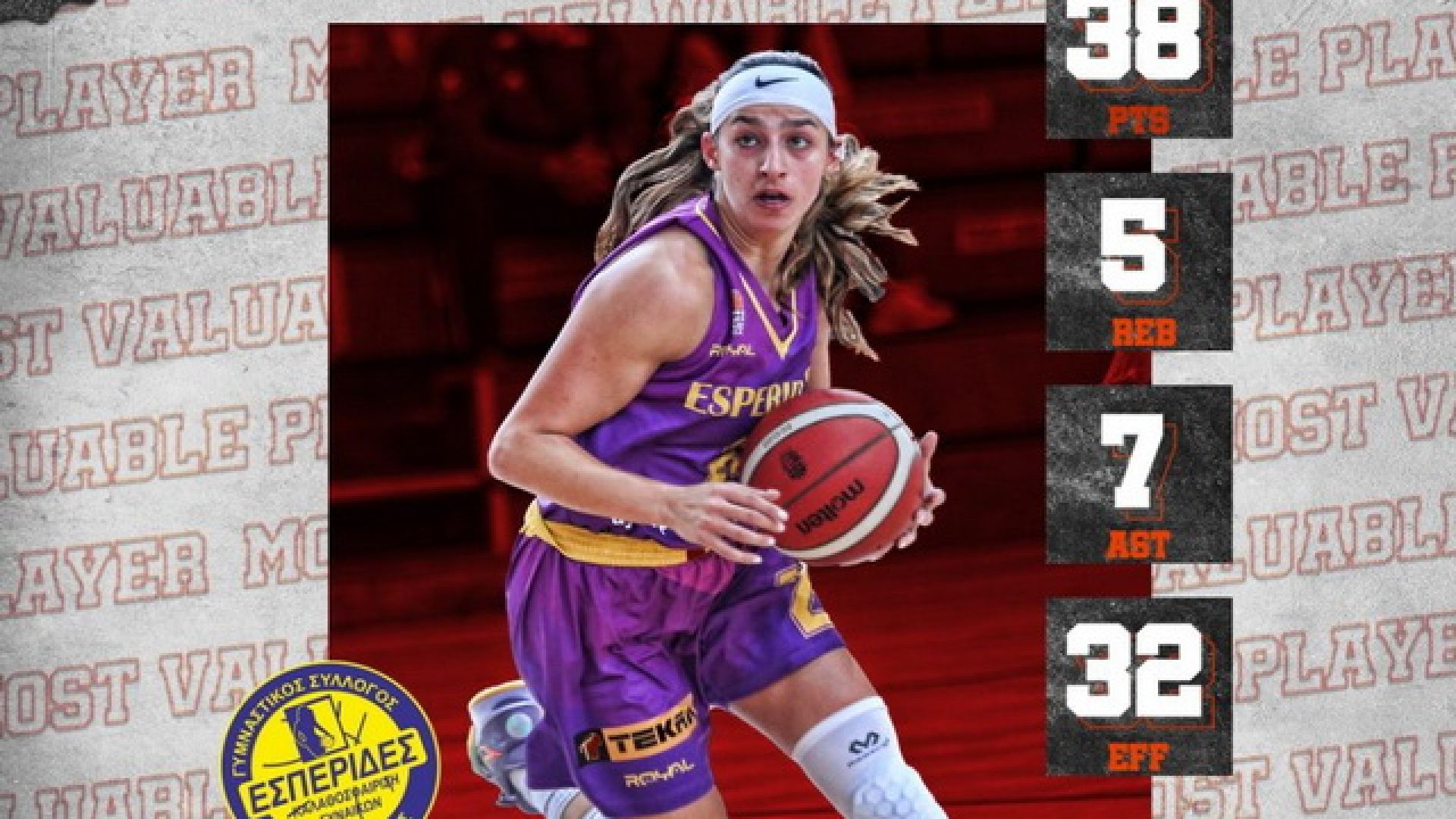 Η Ροξάνα Μπάραμαν ήταν… καυτή, στην νίκη των Εσπερίδων επί της Δάφνης Αγ. Δημητρίου, με την άσο της ομάδας της Καλλιθέας να έχει 38 πόντους, πέντε ριμπάουντ, επτά ασίστ, δύο κλεψίματα και 32 στο σύστημα ranking. κατακτώνας πανάξια το βραβείο της πολυτιμότερης παίκτριας της 3ης αγωνιστικής της Α1 Γυναικών.