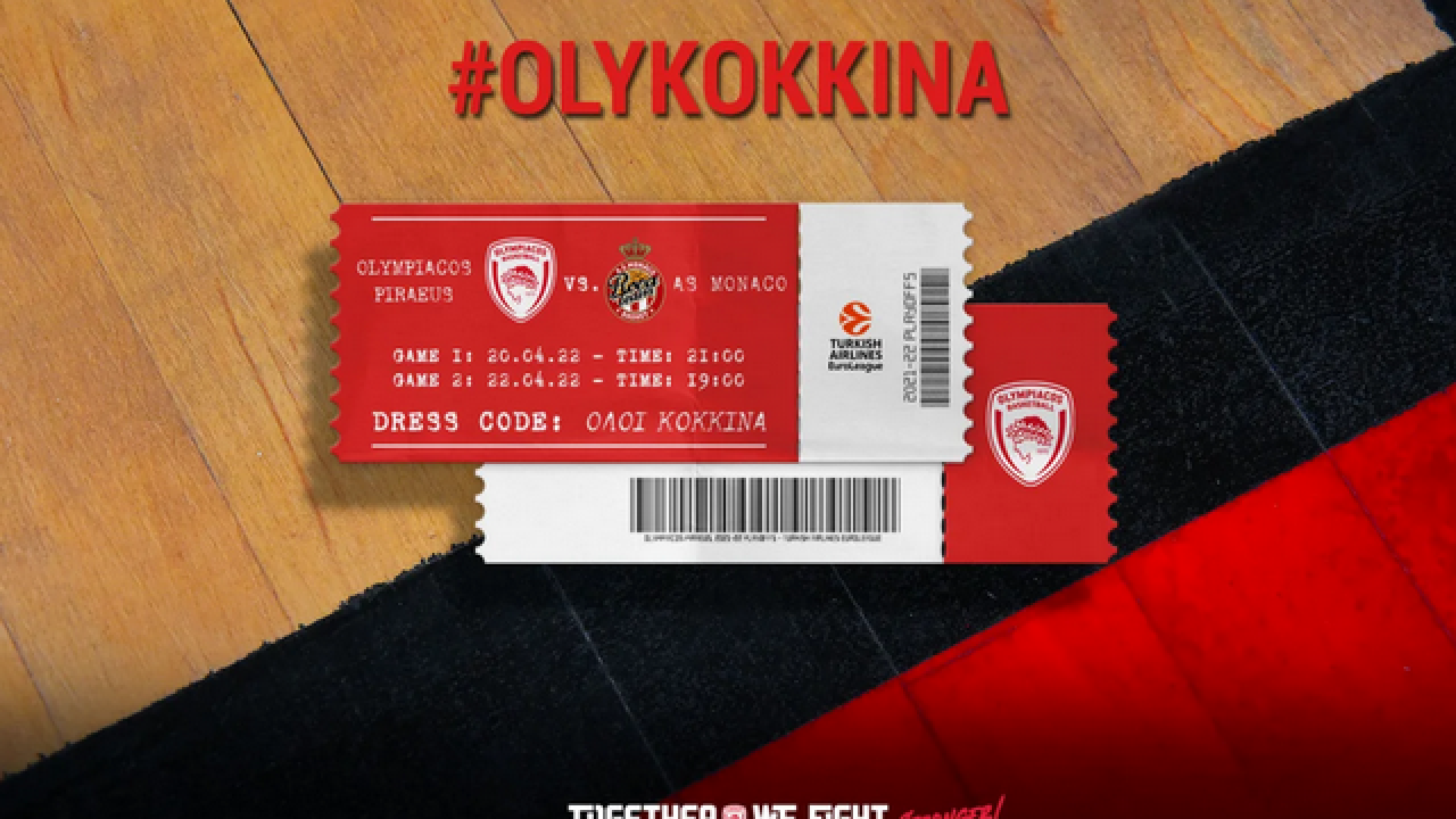 Ο κόσμος του Ολυμπιακού… εξαφάνισε τα εισιτήρια του πρώτου αγώνα με την Μονακό (20/4, 21:00), ενώ είναι θέμα χρόνου να συμβεί κάτι αντίστοιχο και στο δεύτερο παιχνίδι της σειράς (22/4, 19:00), με τους «ερυθρόλευκους» να καλούν τους φίλους της ομάδας να φορέσουν το κόκκινο μπλουζάκι τους και να μετατρέψουν σε… φωτιά το ΣΕΦ.