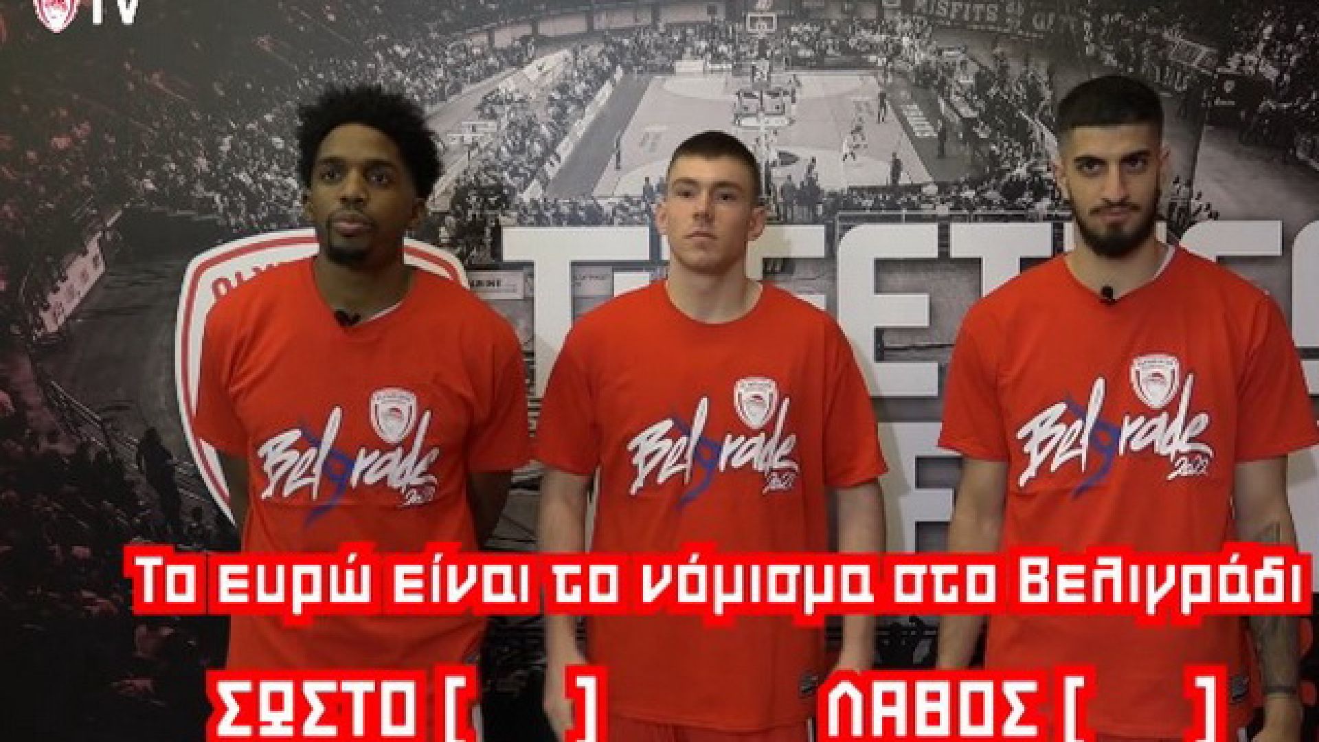 Στο δεύτερο μέρος του «ερυθρόλευκου» αφιερώματος, οι παίκτες του Ολυμπιακούχωρίζονται σε ομάδες και παίζουν το παιχνίδι ερωτήσεων με θέμα το Βελιγράδι.