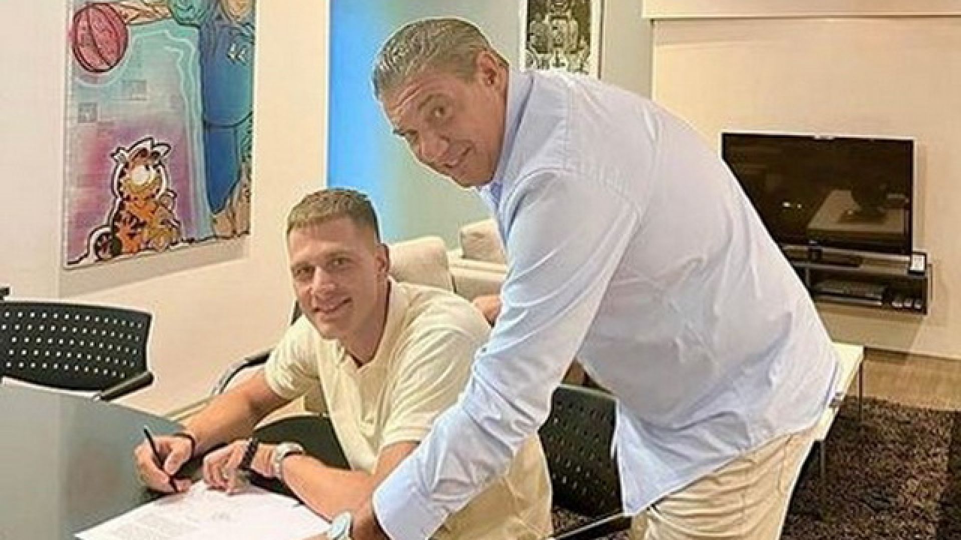 Μάλιστα, ο ατζέντης του παίκτη, Μίσκο Ραζνάτοβιτς, έδωσε στην δημοσιότητα φωτογραφία της στιγμής της υπογραφής των συμβολαίων του παίκτη, σχολιάζοντας χαρακτηριστικά: