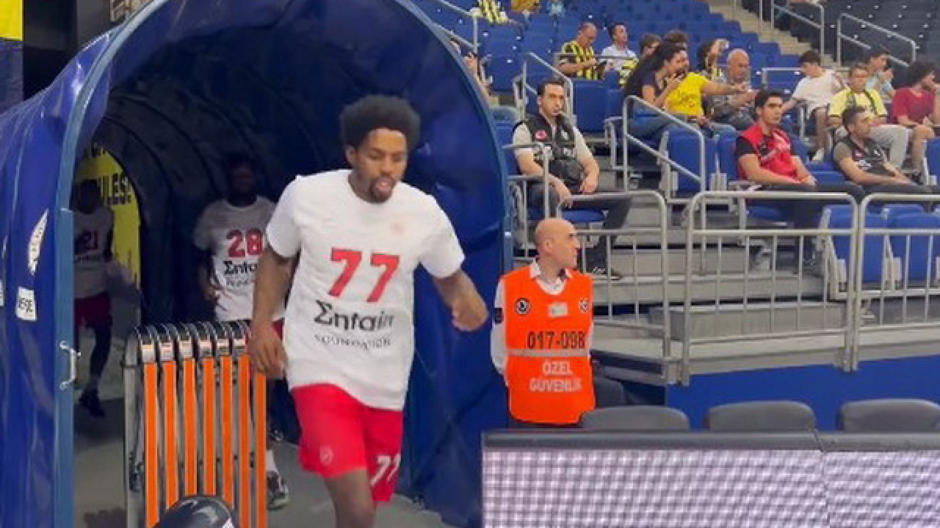 Ο Ολυμπιακός, δύο 24ωρα μετά την νίκη επί της Φενέρμπαχτσε, δίνει σε λίγη ώρα το δεύτερο φιλικό παιχνίδι απέναντι στην ομάδα της Κωνσταντινούπολης και ο φακός του OlympiacosBC TV κατέγραψε την είσοδο των παικτών του Γιώργου Μπαρτζώκα στο παρκέ.