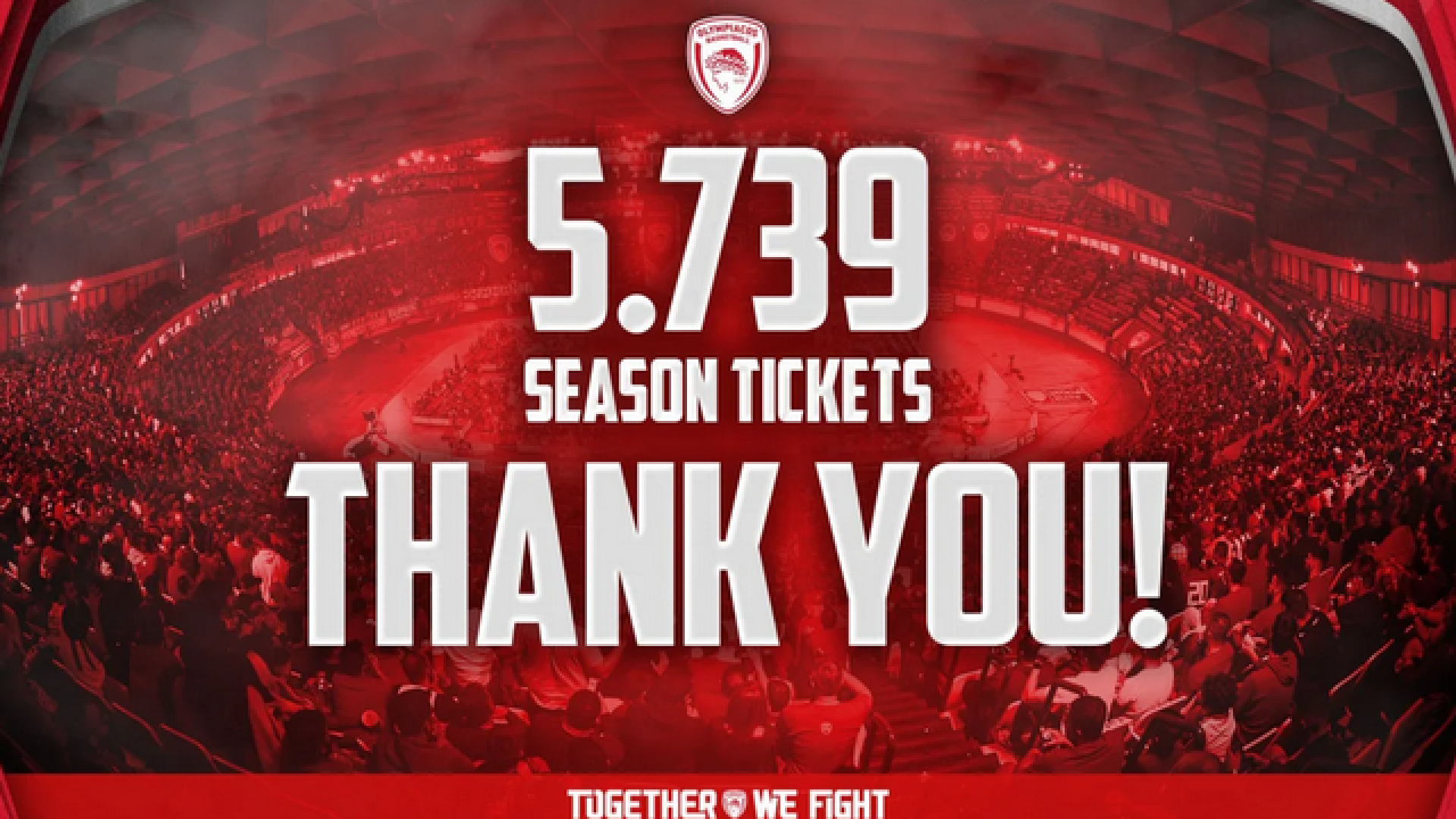 Ολοκληρώθηκε η διάθεση των εισιτηρίων διαρκείας, με τον Ολυμπιακό να διαθέτει συνολικά 5.739 κάρτες και τους «ερυθρόλευκους», με ανακοίνωση τους, να ευχαριστούν όλους όσους έκλεισαν την θέση τους στις εξέδρες του ΣΕΦ.