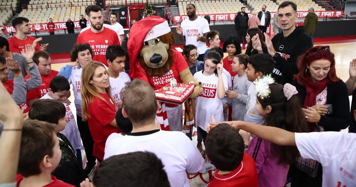 Η μασκότ των ερυθρόλευκων βρέθηκε κοντά στα παιδιά και έσβησε την τούρτα για τα 10 χρόνια λειτουργίας του One Team.