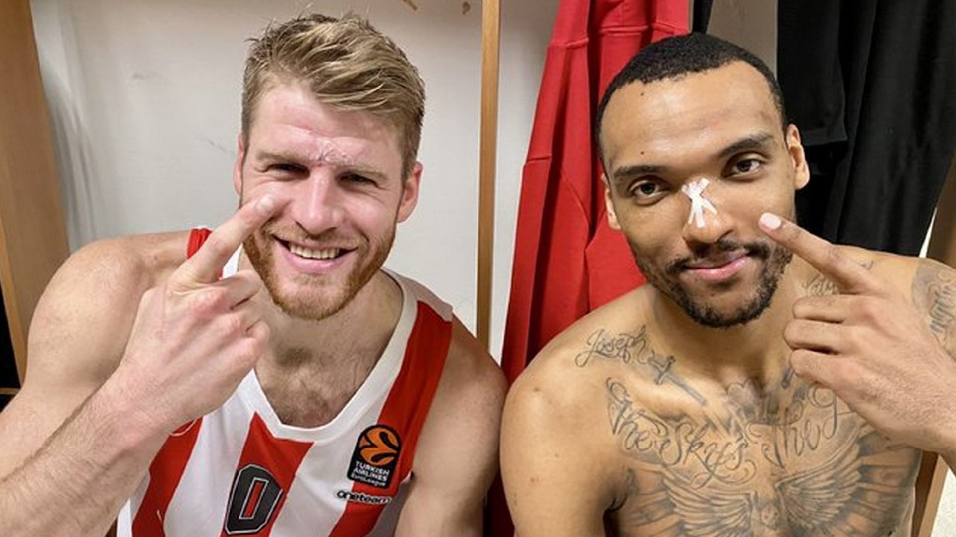 Ο Ολυμπιακός έκανε επίδειξη δύναμης στην Κωνσταντινούπολη, απέναντι στην Φενέρμπαχτσε, με τους «ερυθρόλευκους» να αφήνουν το αίμα τους στο παρκέ του «Ulker Sports Hall», όπως φαίνεται και από την φωτογραφία των… λαβωμένων Γουόκαπ και Μπολομπόι.