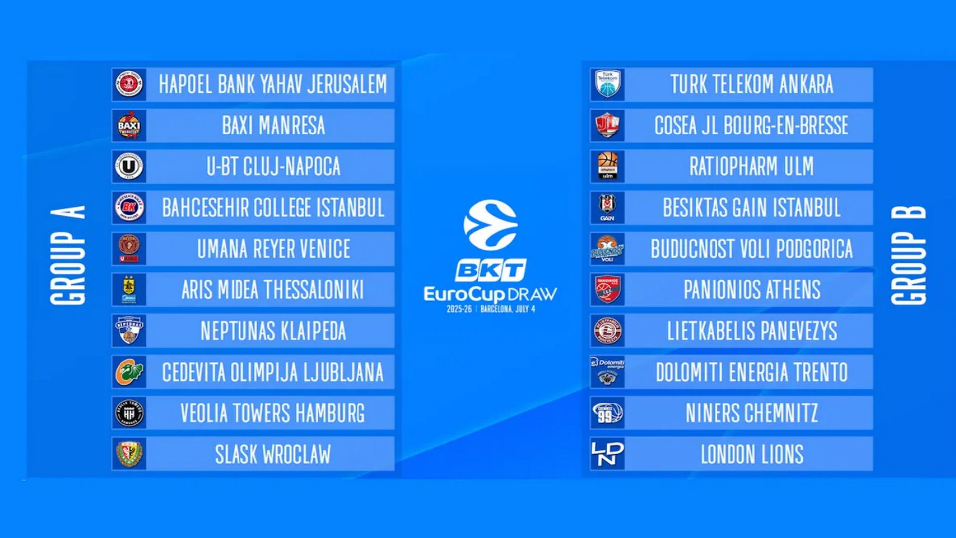 Άρης και Πανιώνιος έμαθαν τους αντιπάλους τους στο Eurocup, μετά την κλήρωση της φάσης των ομίλων, ενώ παράλληλα έγινε γνωστό και το πρόγραμμα των δύο ομάδων στην διοργάνωση.
