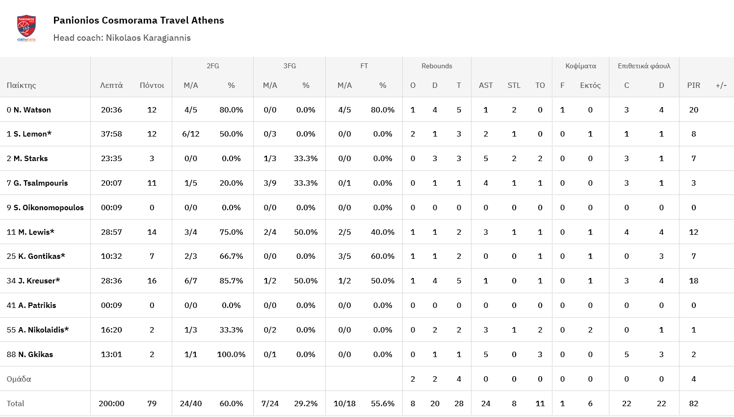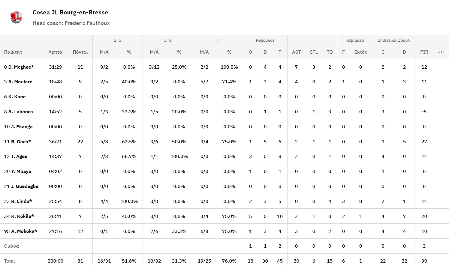 Ξεχώρισαν: Από την Μπουργκ διακρίθηκαν οι Μοκόκα και ΜακΓκι με 12 και 11 πόντους αντίστοιχα. Από τον Πανιώνιο σκόραραν οι Κρούζερ, Λιούις και Λεμον με 16, 14 και 12 πόντους αντίστοιχα.