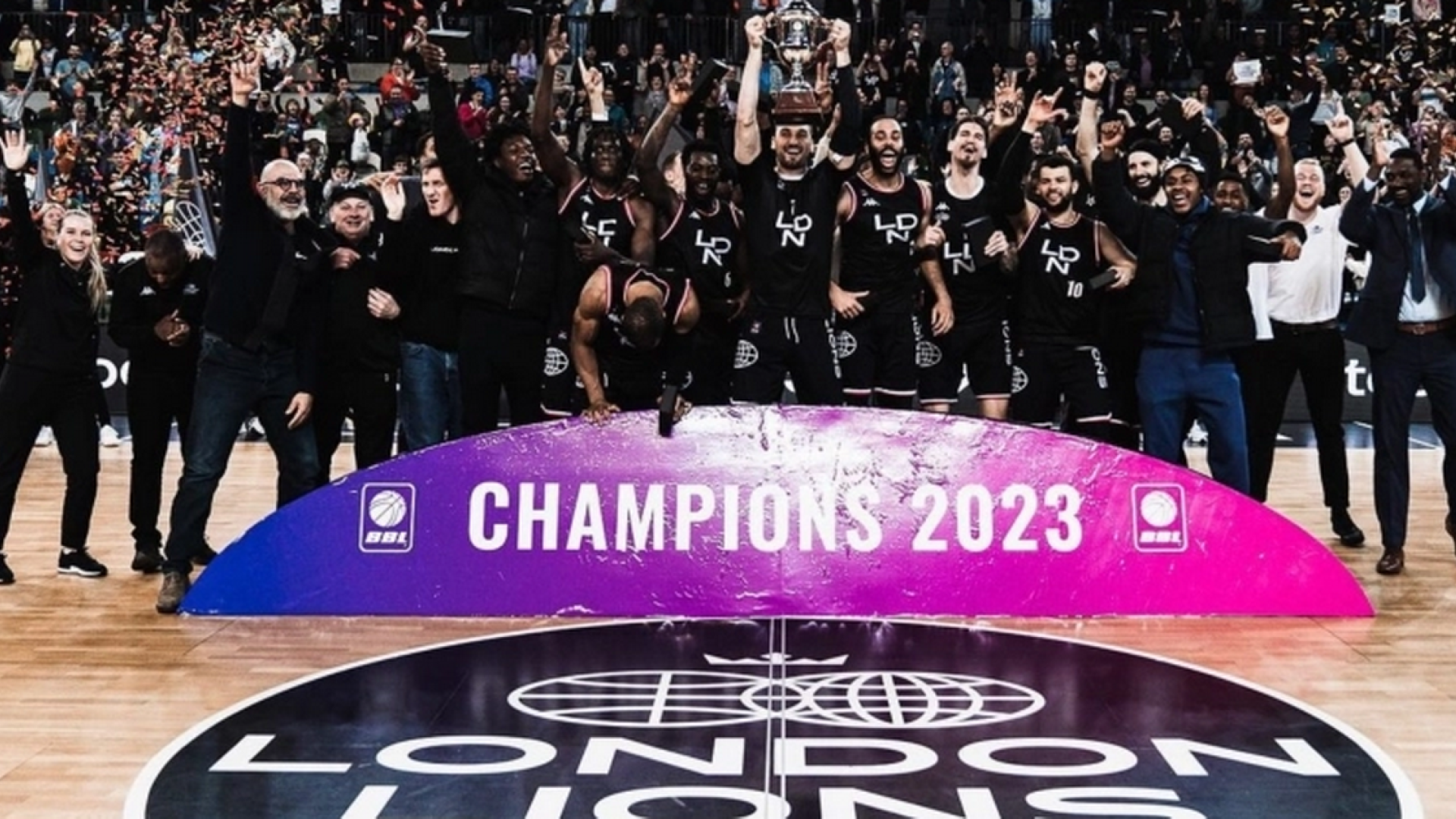 Την κατάκτηση του double πανηγυρίζουν οι Λόντον Λάιονς του Κώστα Κουφού, μετά την νίκη τους με 88-75 επί των Σάρεϊ Σόρτσερς, αποτέλεσμα που τους εξασφάλισε και μαθηματικά τον τίτλο, έξι αγωνιστικές πριν το φινάλε.