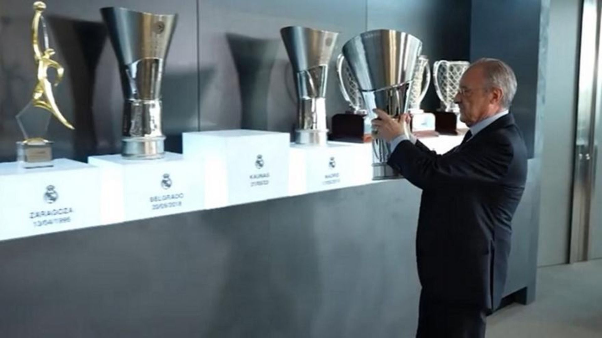 Ο πολύ γνωστός και από το ποδόσφαιρο, πρόεδρος των μερένγχες, Φλορεντίνο Πέρεθ έβαλε το 11ο τρόπαιο των μπλάνκος από την Euroleague στην ειδικά διαμορφωμένη αίθουσα του συλλόγου.