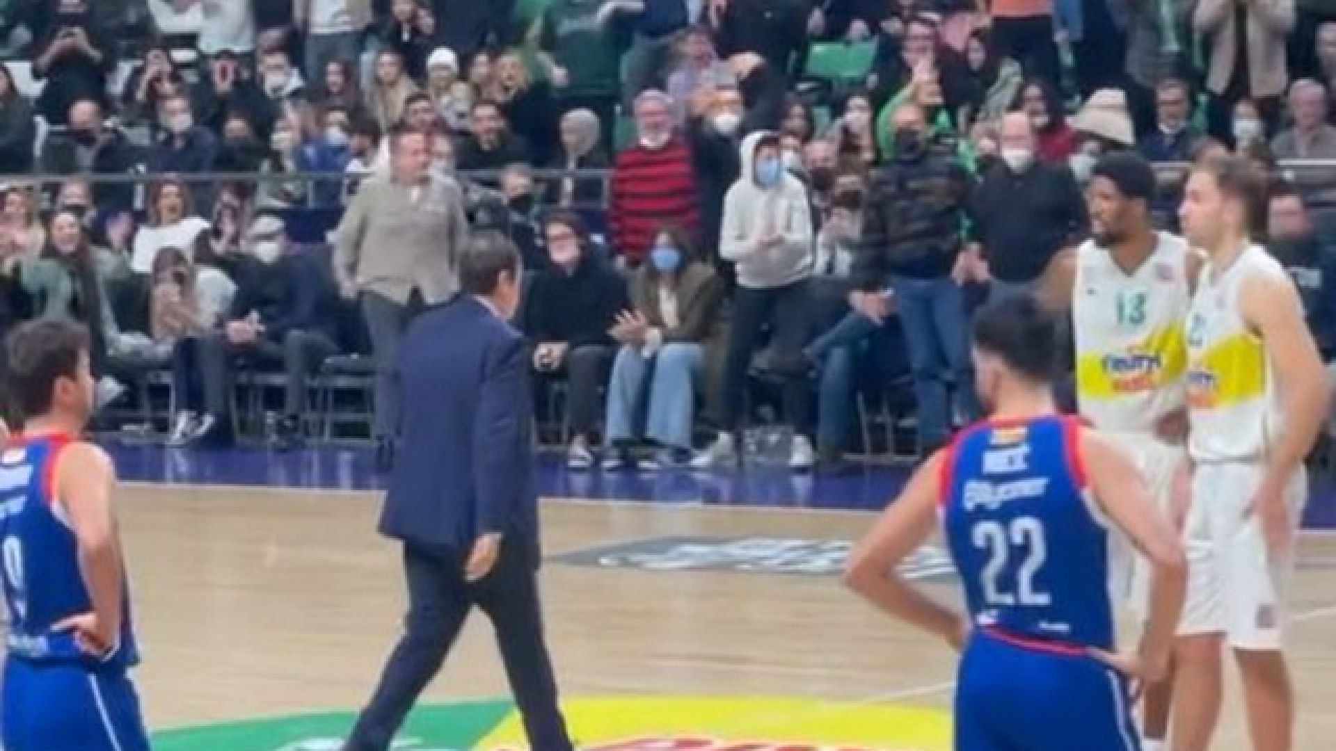 Στο παιχνίδι της Εφές με την Μπούρσασπορ, ο προπονητής των πρωταθλητών Ευρώπης… εξερράγη, μετά από αγκωνιά παίκτη των γηπεδούχων στον Μπράιαντ, με αποτέλεσμα να δεχτεί δύο τεχνικές ποινές στα… καπάκια, από τους διαιτητές του αγώνα και να πάρει την άγουσα για τα αποδυτήρια.