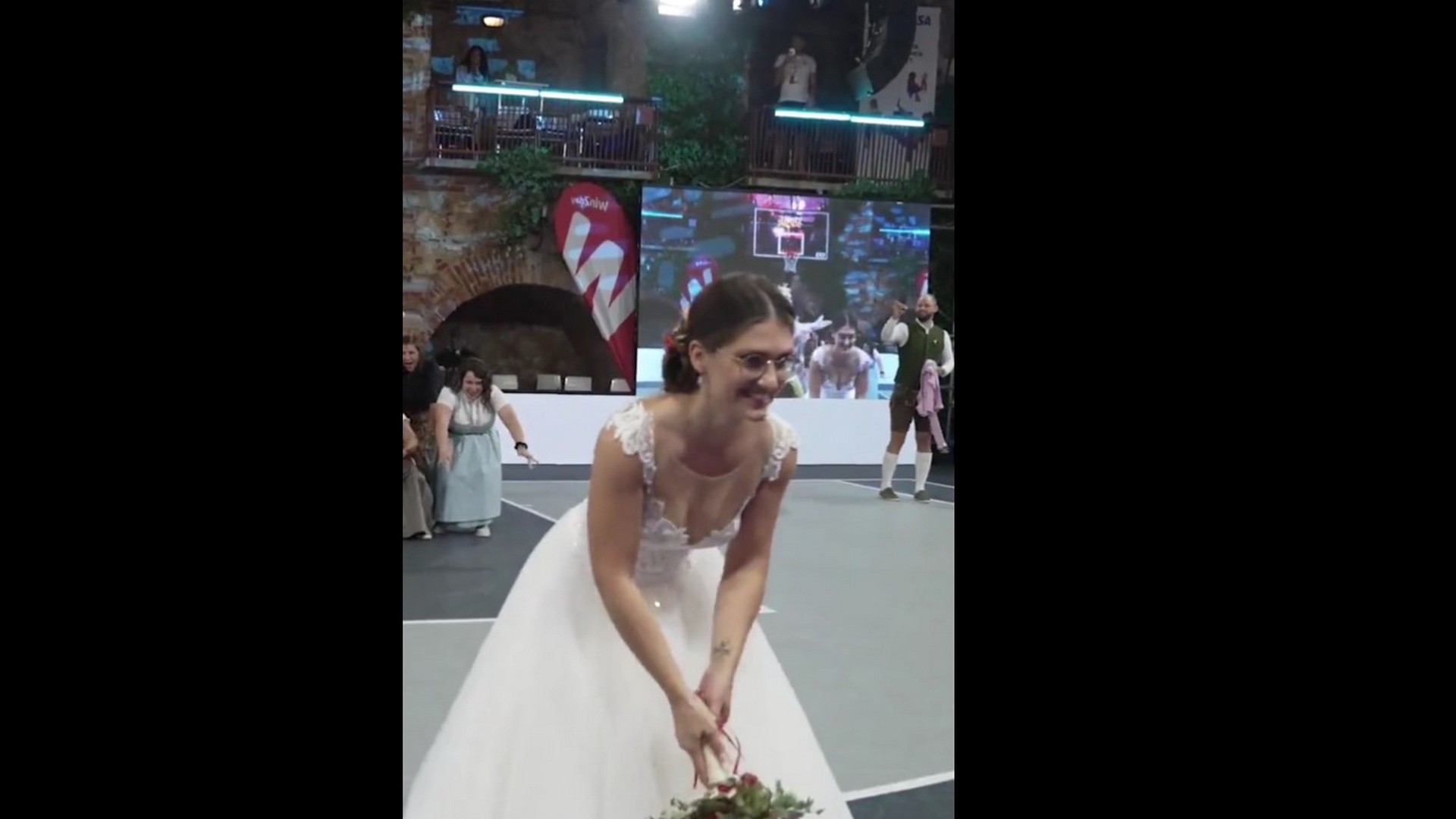 FIBA 3X3 - Νύφη σκοράρει ανάποδα με ανθοδέσμη για... τρεις (vid)