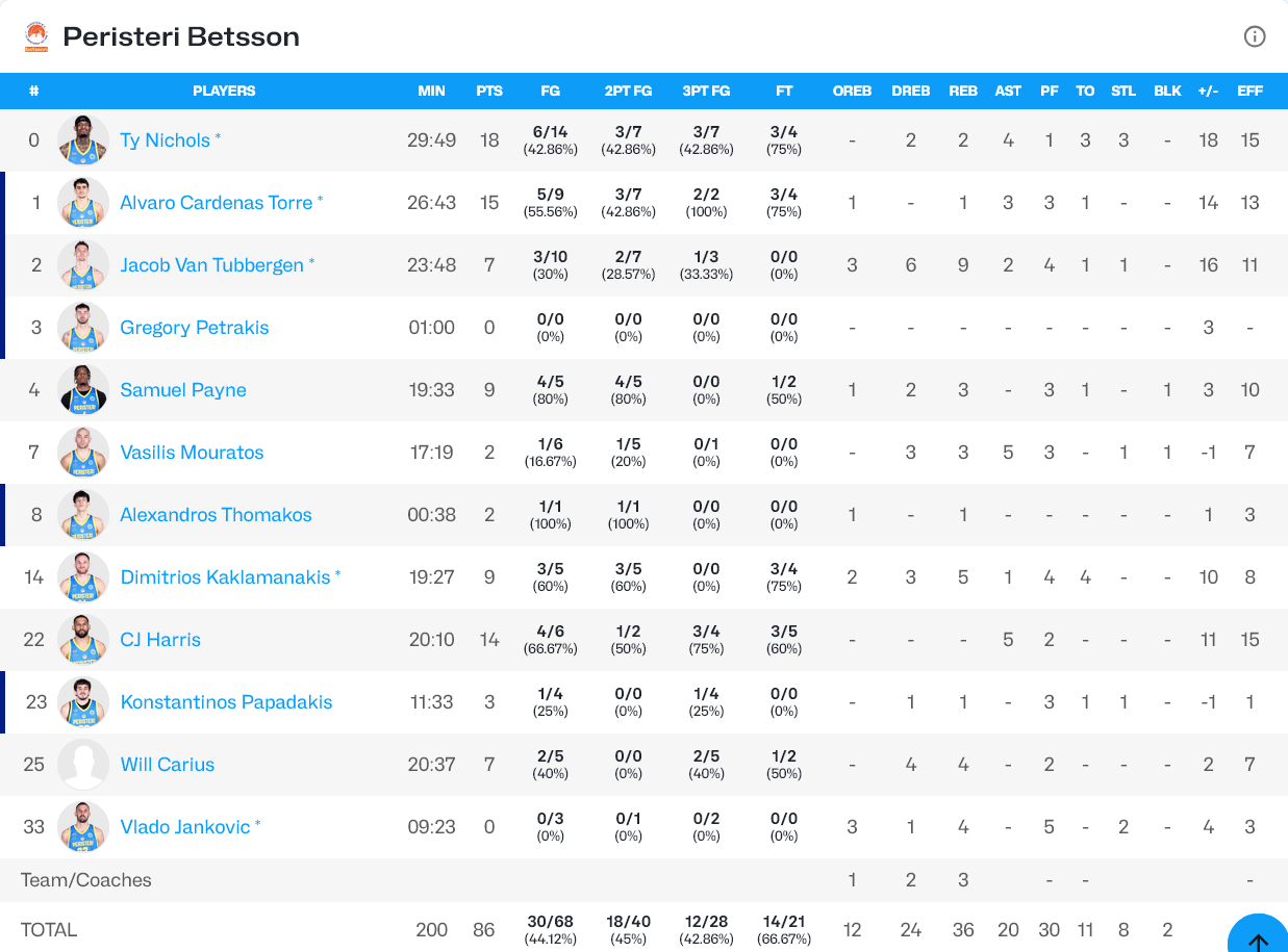Η μεγαλύτερη διαφορά: +18 για το Περιστέρι (86-68) στο 39’