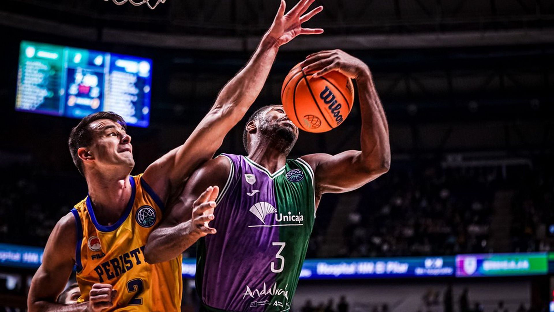 Η Μάλαγα ήταν η απόλυτη κυρίαρχος στο πρώτο μισό της αναμέτρησης με το Περιστέρι. Το Περιστέρι διατηρήθηκε σε απόσταση βολής μέχρι το 8’ (15-13), όμως οι Ισπανοί στο τελευταίο δίλεπτο ανέβασαν κατακόρυφα την απόδοση τους και χάρη σε ένα επιμέρους 11-2, έκλεισαν την πρώτη περίοδο μπροστά με 26-15. Η Μάλαγα μπήκε με το… πόδι στο γκάζι και στην β’ περίοδο, εκτοξεύοντας την διαφορά στο +18 (41-23 στο 17’). Σε αντίθεση με την πρώτη περίοδο, όμως, το φινάλε της δεύτερης άνηκε στο Περιστέρι, με το συγκρότημα του Βασίλη Σπανούλη να απαντά με ένα 10-1… ροκανίζοντας την διαφορά στους 11 πόντους, με το 44-33 να είναι το σκορ με το οποίο ολοκληρώθηκε το πρώτο ημίχρονο της αναμέτρησης.