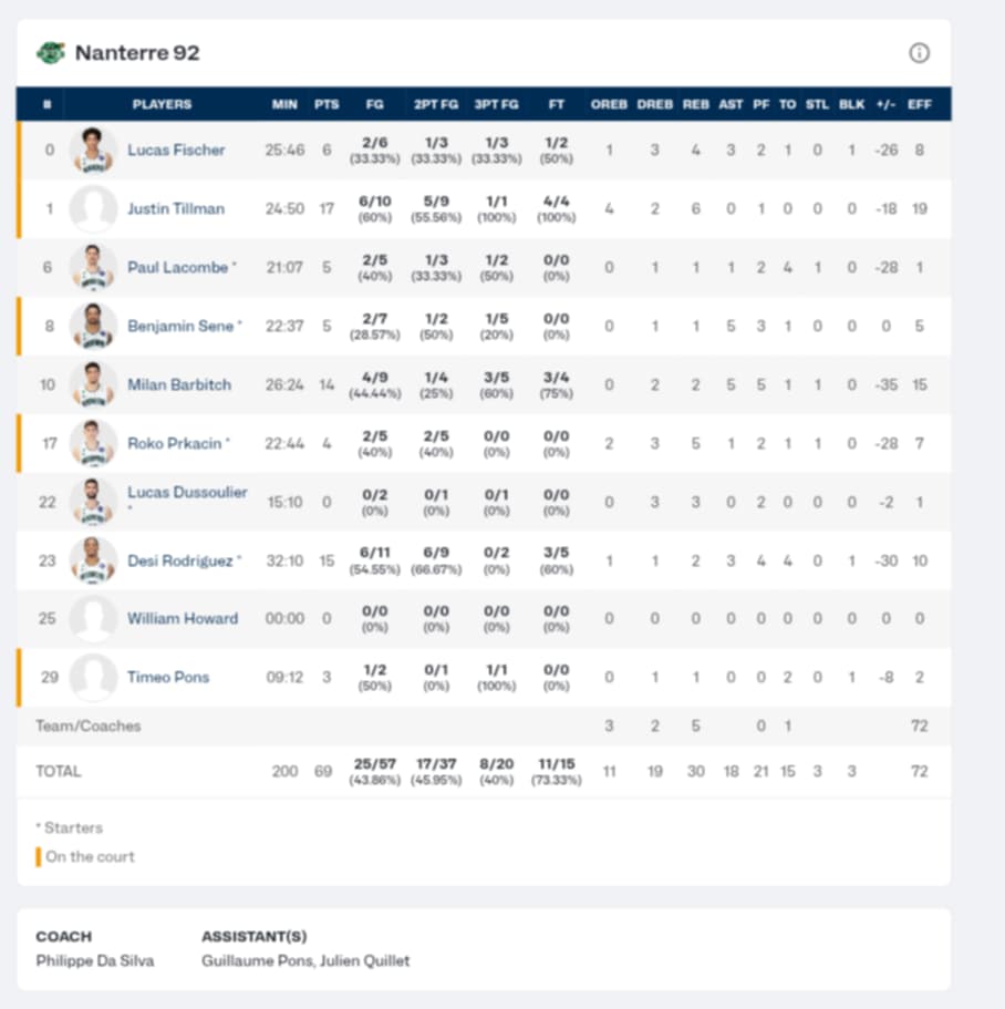 Ξεχώρισαν: Από την ΑΕΚ διακρίθηκε ο Γκόλντεν και Χαμπ με 19 και 15 πόντους αντίστοιχα. Από την Ναντέρ σκόραραν ο Τίλμαν και ο Ροντρίγκεζ με 17 και 15 πόντους