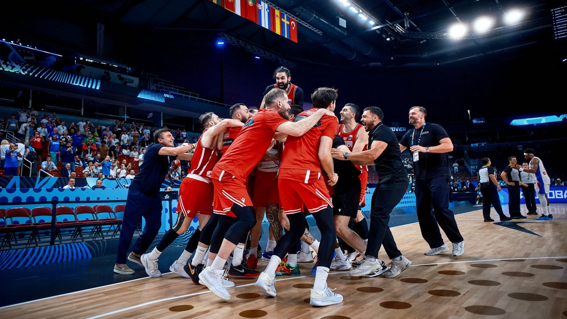 Η Γεωργία έγραψε ιστορία με την νίκη – πρόκριση με 80-70 απέναντι στην Γαλλία, με την κάμερα της FIBA να καταγράφει τους πανηγυρισμούς του Τόκο Σενγκέλια και των συμπαικτών του, αμέσως μετά το φινάλε της αναμέτρησης.