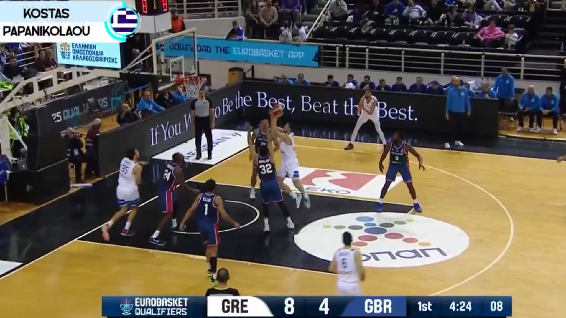 Μεταξύ των δέκα καλύτερων φάσεων της 7ης ημέρας των προκριματικών για το Eurobasket 2025, βρίσκεται στη θέση νούμερο 10, το όμορφο καλάθι του Κώστα Παπανικολάου από τον αγ΄ωνα της Εθνικής Ανδρών απέναντι στη Μεγάλη Βρετανία, με τον φόργουορντ του Ολυμπιακού να πετυχαίνει ένα δύσκολο layup μπροστά στον αμυντικό.