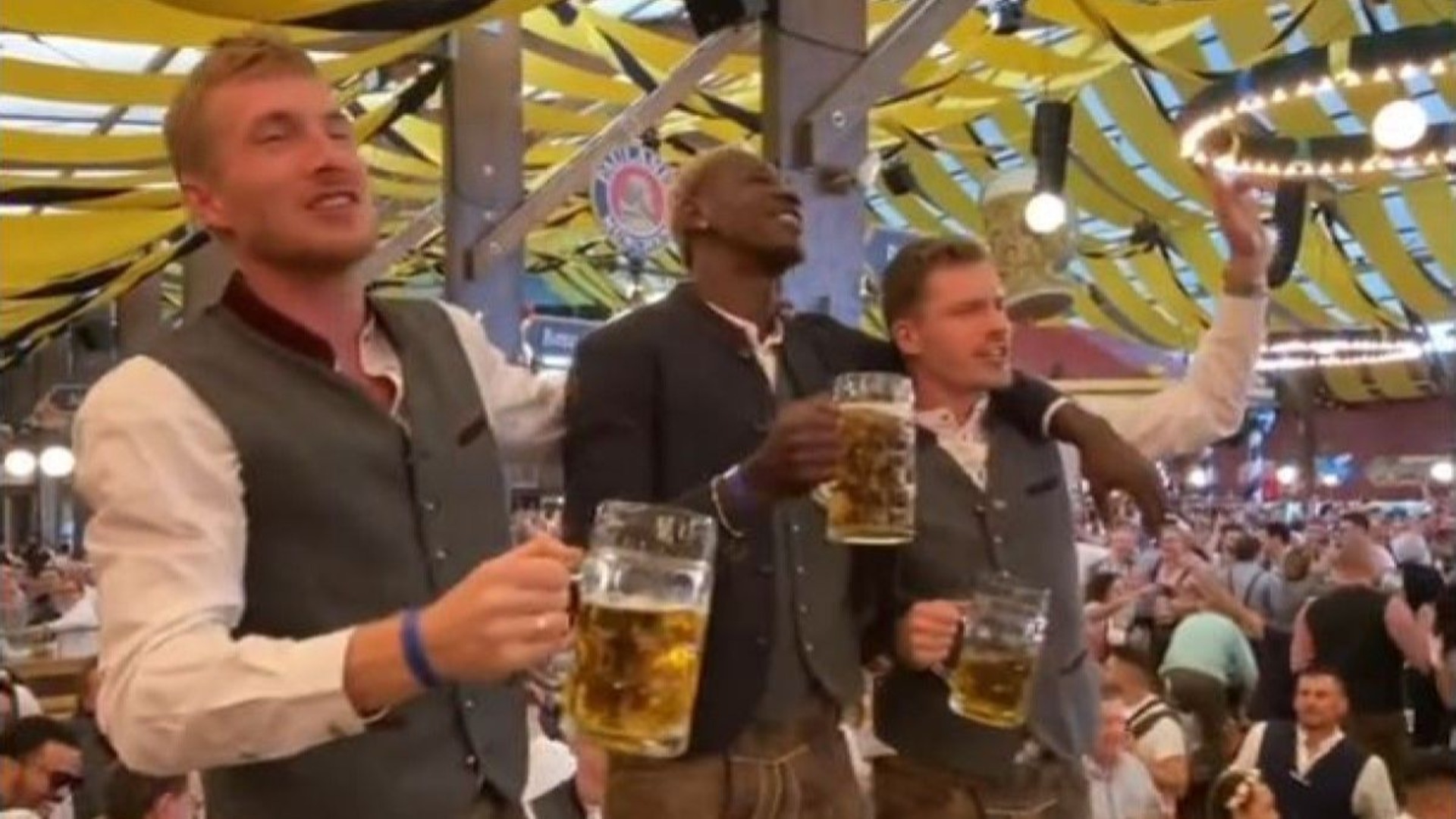 Οι διεθνείς παίκτες της Εθνικής Γερμανίας, Αντρέας Ομπστ, Άιζακ Μπόνγκα και Νιλς Γκιφάι πανηγύρισαν και στο Oktoberfest για την κατάκτηση του χρυσού μεταλλίου της Γερμανίας στο Παγκόσμιο Κύπελλο 2023.