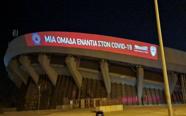ΚΑΕ Ολυμπιακός, Γενική Γραμματεία Πολιτικής Προστασίας και διοίκηση του Σταδίου Ειρήνης και Φιλίας , έστειλαν το δικό τους μήνυμα κατά του κορονοϊού, με την φωταγώγηη του φαληρικού κλειστού.