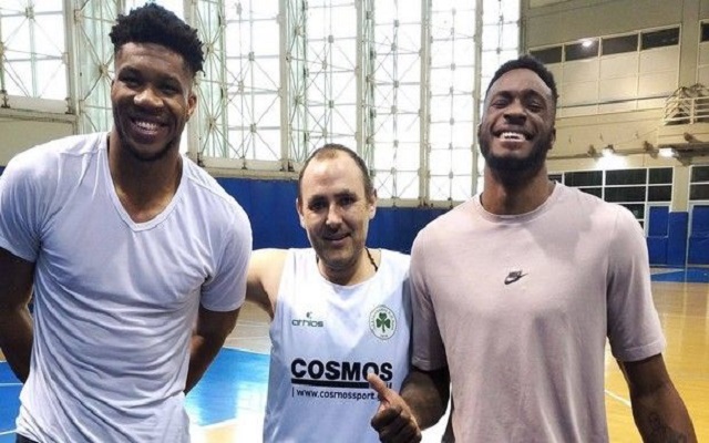 Παναθηναϊκός: Γιάννης και Θανάσης Αντετοκούνμπο στην προπόνηση της ομάδας με αμαξίδιο (pics)